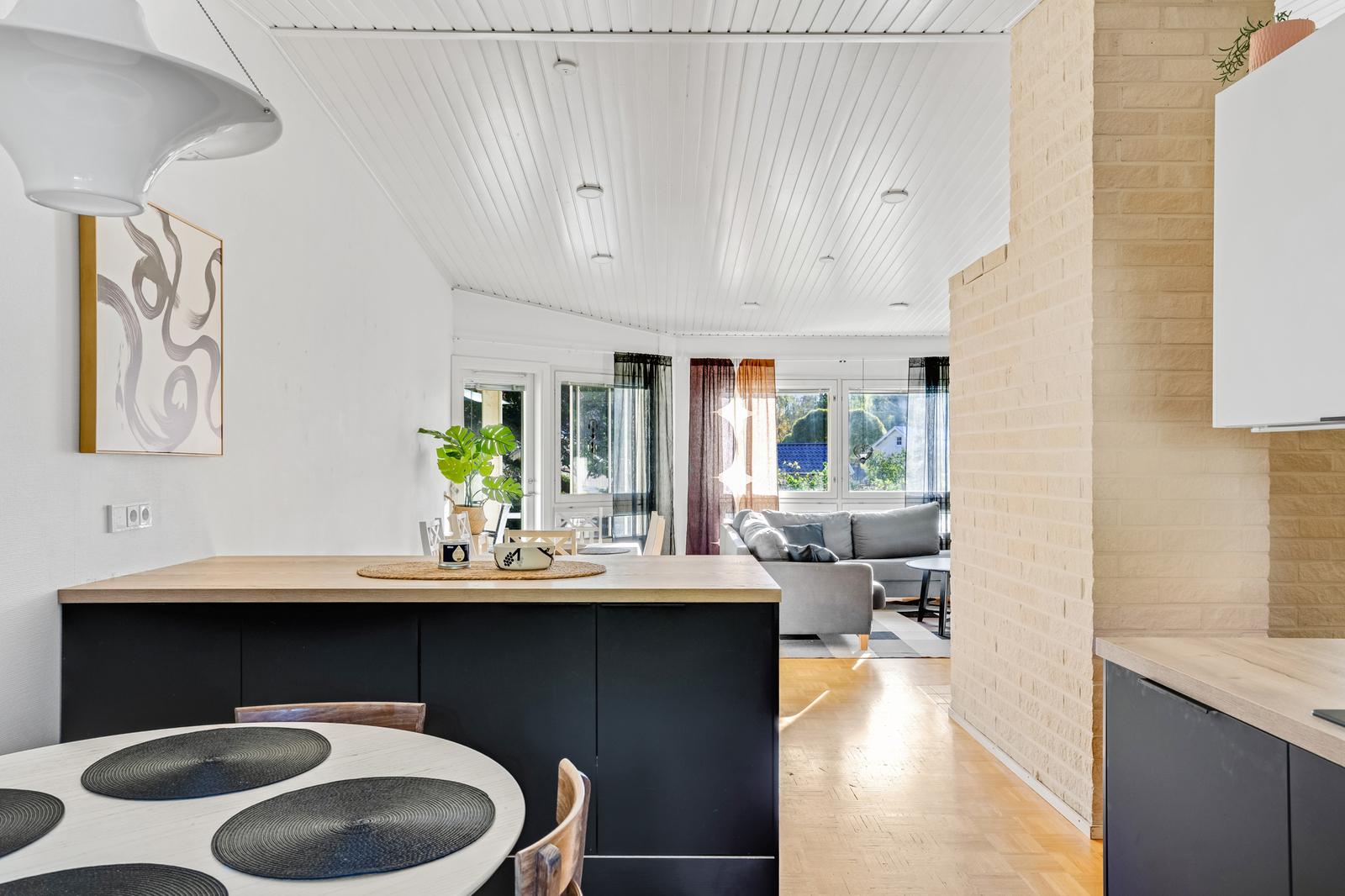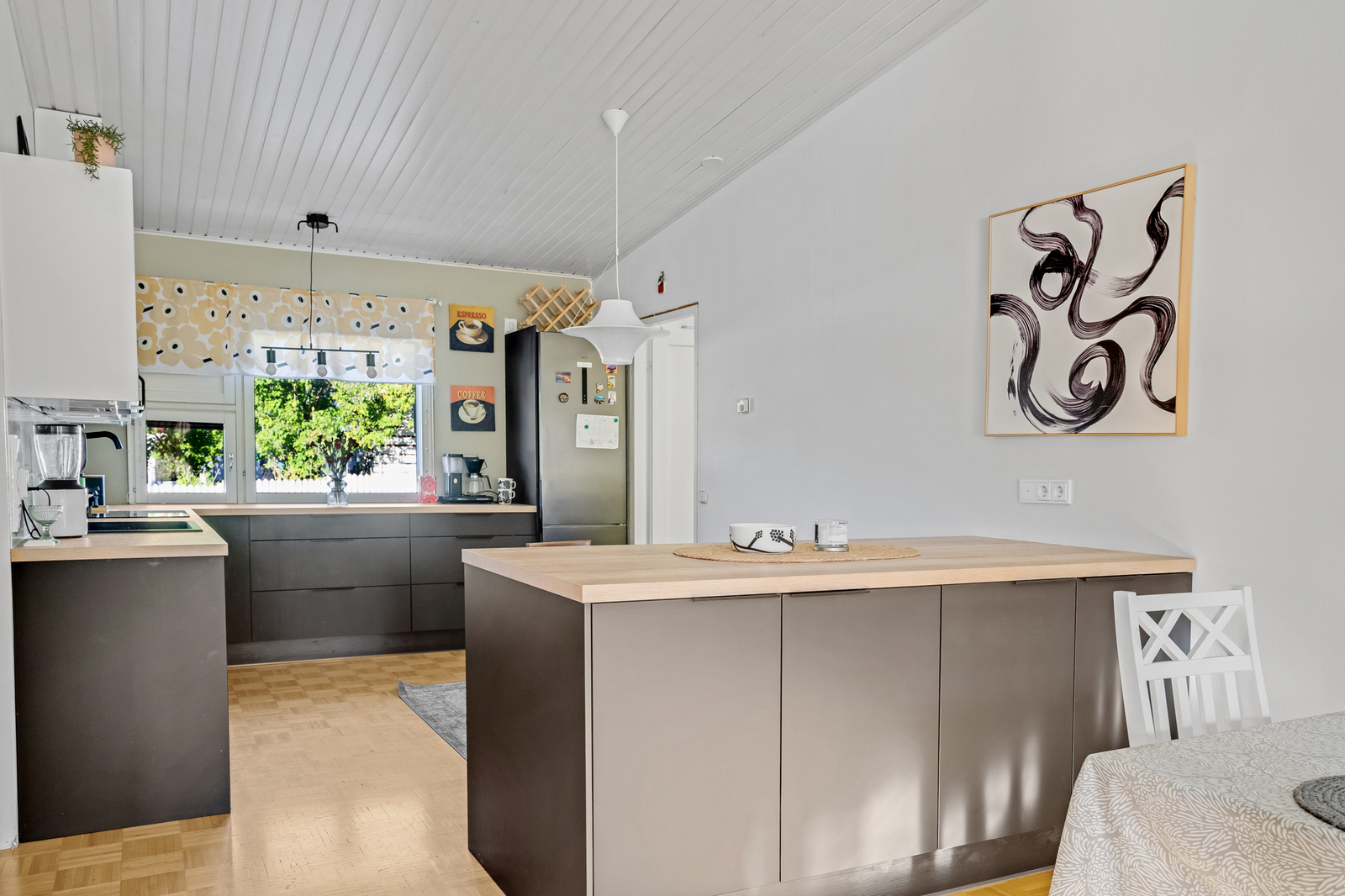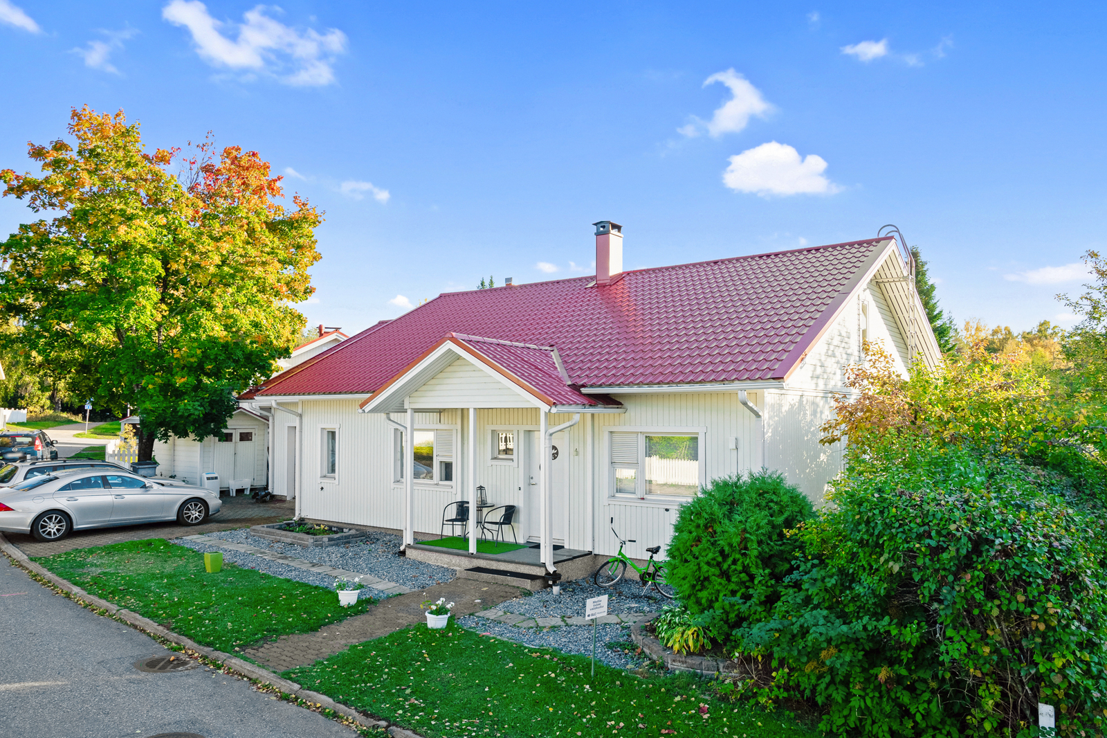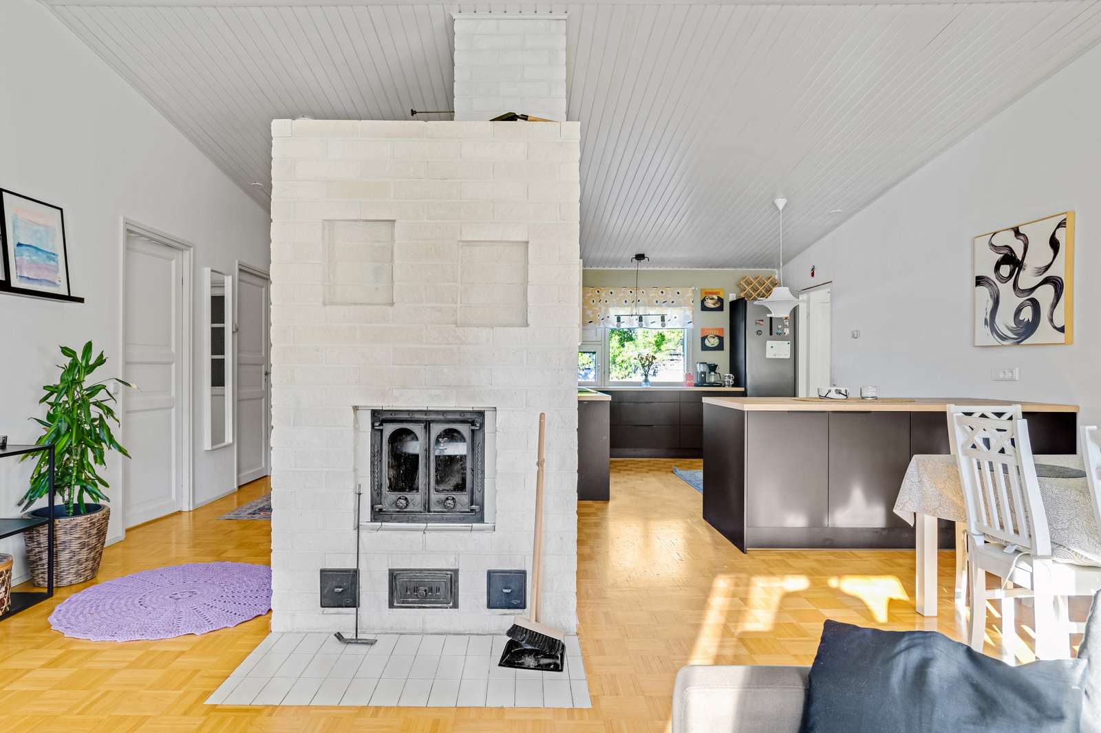 Toimiva pohjaratkaisu, kolme makuuhuonetta ja tilava olohuone. Keittiö remontoitu 2022, modernit Puustellin kalusteet ja uudet kodinkoneet. Olohuoneen ja keittiön välissä saareke. Kaksi erillistä wc:tä, sisäänkäynti myös kodinhoitohuoneen kautta. Kodinhoitohuone, kylpyhuone ja sauna remontoitu 2013, kylppärissä kaksi suihkua. Sähkölämmityksen lisäksi varaava takka. Olohuoneesta käynti lasitetulle terassille ja suojaiselle pihalle. Talon yhteydessä autotalli ja varasto. Edullinen kaupungin vuokratontti.