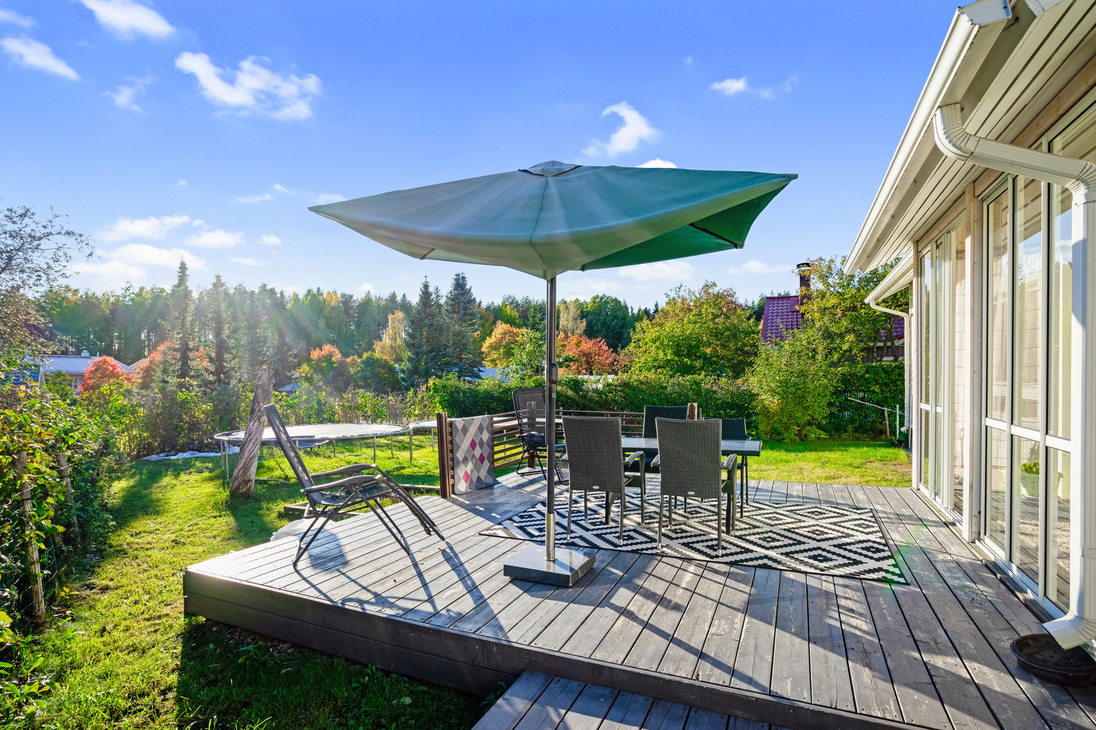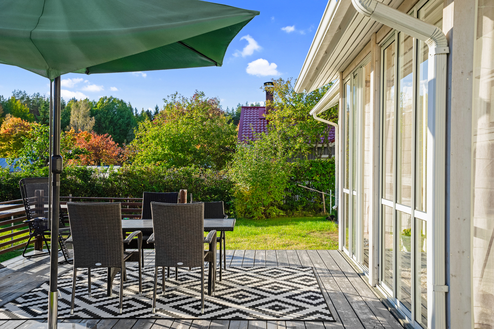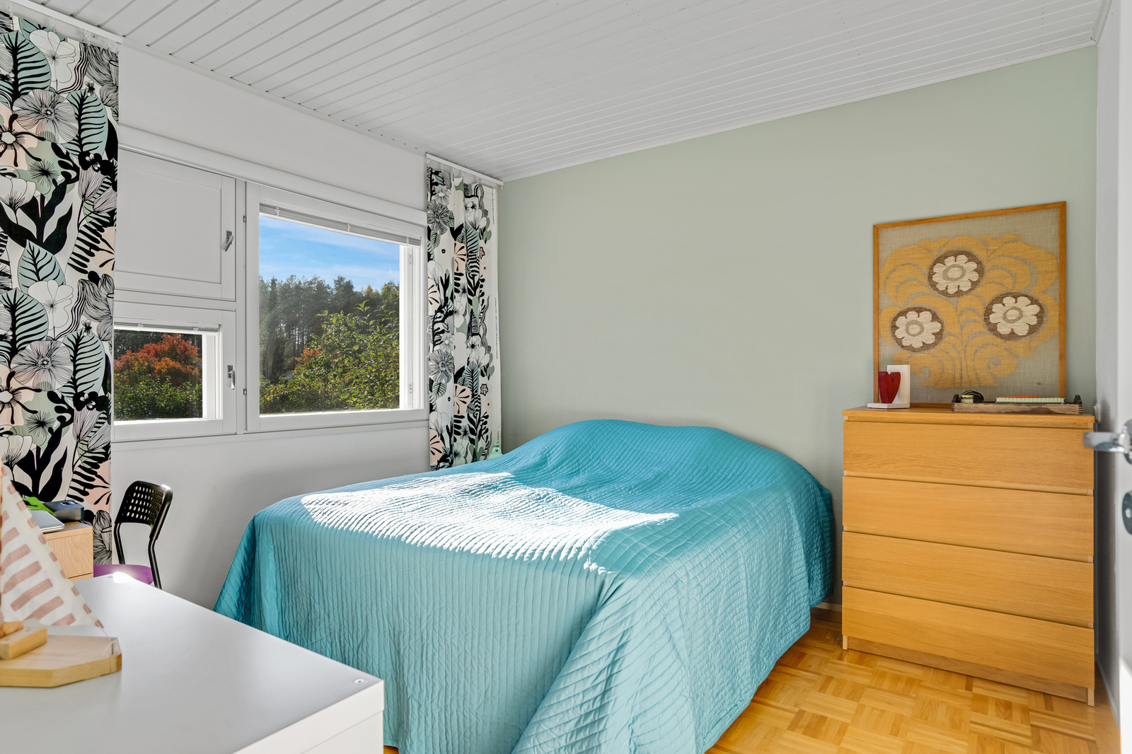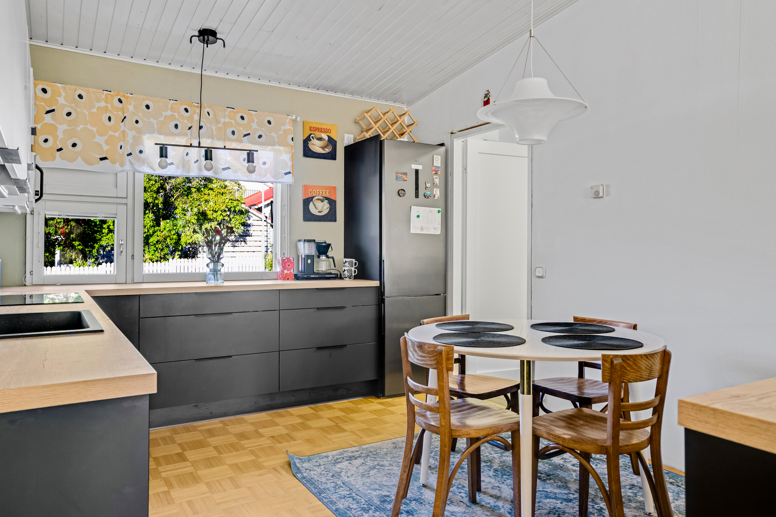 Toimiva pohjaratkaisu, kolme makuuhuonetta ja tilava olohuone. Keittiö remontoitu 2022, modernit Puustellin kalusteet ja uudet kodinkoneet. Olohuoneen ja keittiön välissä saareke. Kaksi erillistä wc:tä, sisäänkäynti myös kodinhoitohuoneen kautta. Kodinhoitohuone, kylpyhuone ja sauna remontoitu 2013, kylppärissä kaksi suihkua. Sähkölämmityksen lisäksi varaava takka. Olohuoneesta käynti lasitetulle terassille ja suojaiselle pihalle. Talon yhteydessä autotalli ja varasto. Edullinen kaupungin vuokratontti.