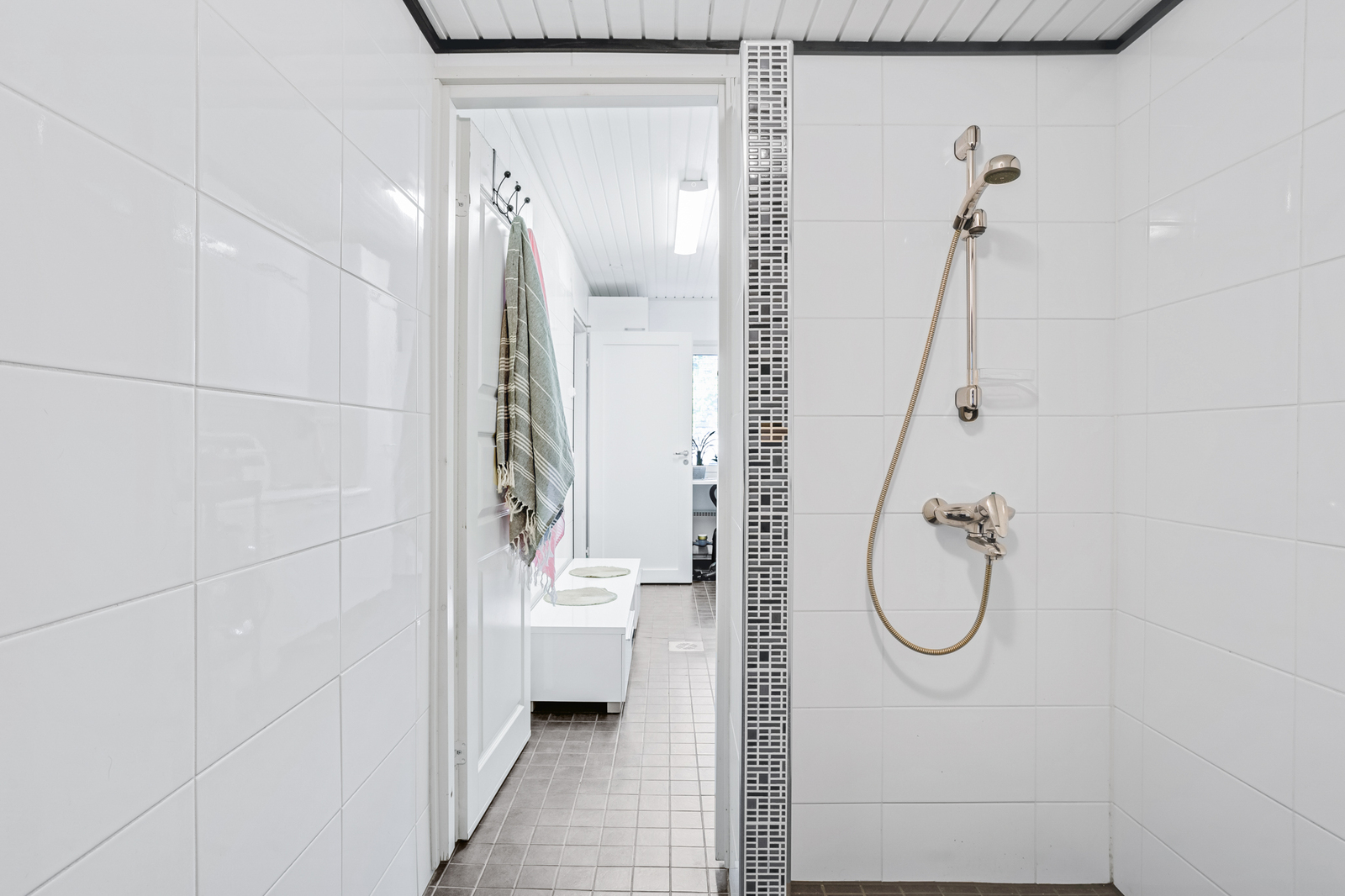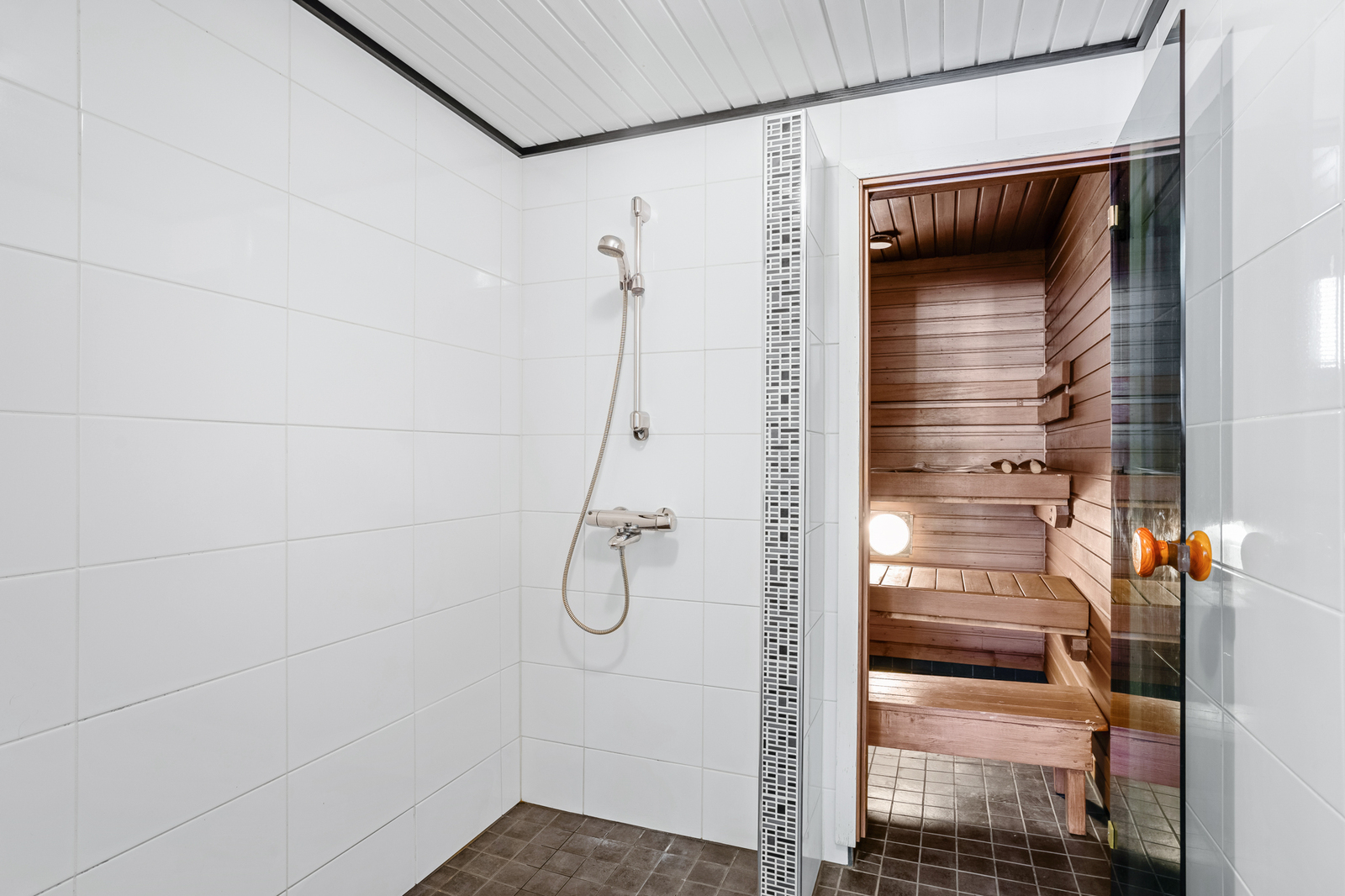 Suihku, lattialämmitys ja kiinteät valaisimet, seinät (kaakeli), lattiat (laatta) |