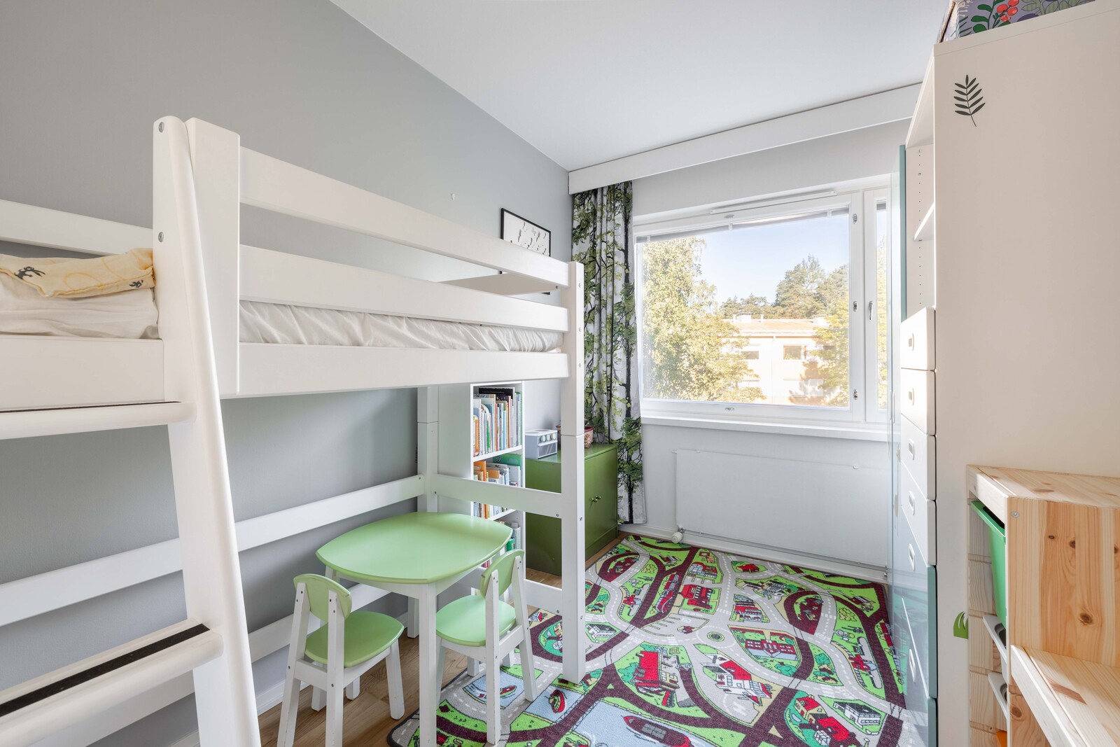 Valoisa koti hissitalon 3. kerroksessa. Erilliseen keittiöön mahtuu ruokapöytä ja keittiössä on paljon työskentelytilaa kotikokille. Makuuhuoneet sijaitsevat molemmissa päissä asuntoa – näin saat omaa rauhaa kun sitä kaipaat. Olohuone on tilava ja toimiva takka luo tunnelmaa syysiltoihin. Olohuoneesta on myös kulku lasitetulle länsiparvekkeelle. Täällä nautit ilta-auringosta.