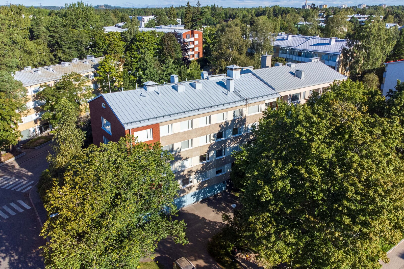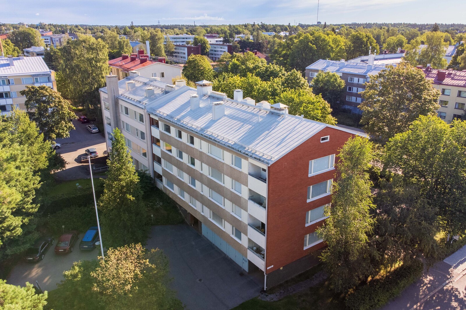 | Tehdyt remontit | 2001 päätyikkunat ja ikkunapalkkikorjaus, 2002 katon korjaus ja maalaus, 2003 lämmönvaihdin uusittu, 2004 öljysäiliön puhdistus ja sepelityö 2005 LVV-putkistojen kuntotutkimus ja ammeiden pohjaventtiilien uusiminen, 2006 parvekkeiden maalauskorjaukset, 2007 ikkunoiden ulkopuolinen maalaus ja kuntotutkimus, yhtiön asunnon remontti, vesikaton kulkusiltojen asennus, 2011 viemärisaneeraus pinnoittamalla, 2013 vesi-ja sähkö-ja kph-saneeraus, porrashuoneen ja kellarikäytävän maalaus, autotallien ovien kunnostus, piha-asfaltoinnin uusiminen, 2014 lukituksen uusiminen, 2015 vesikatteen uusiminen, 2016 saunaosaston remontointi, 2017 hissin modernisointi, lämpökeskuksen lämmönsiirrin uusittu, 2020 peltikaton maalaus, 2021 lounaispäädyn julkisivun korjaus, 2022 ikkunaremontti ja AT-ovien maalaus |