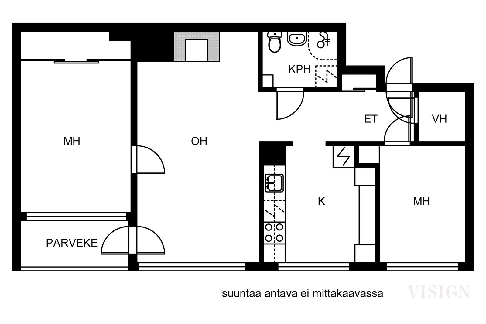 | Huoneistoselitelmä | 3, h, k, kph, vh, lasitettu parveke ( yj, 3 h+k) |