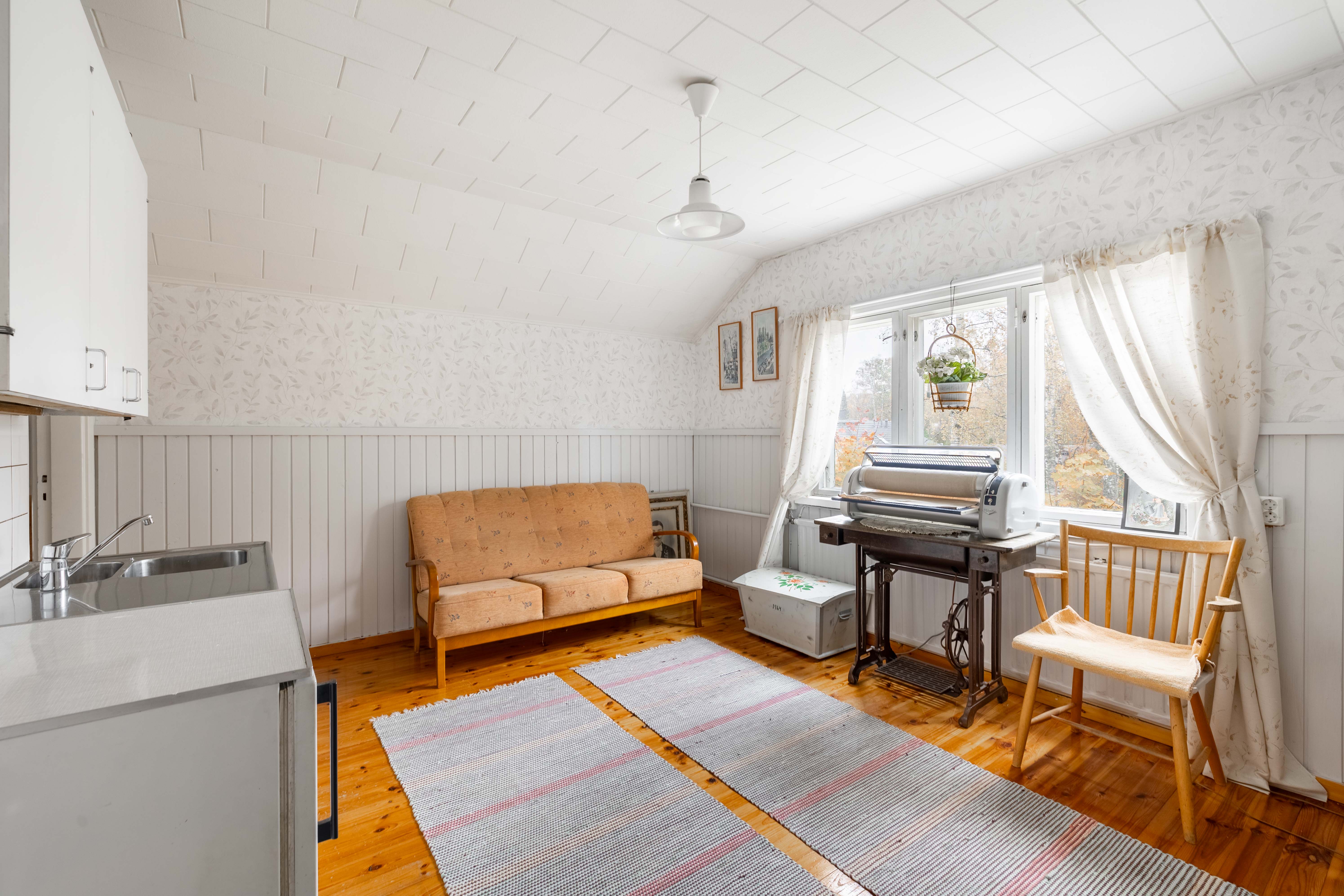 Talon keskikerroksessa on valoisa olohuone, erillinen keittiö ja makuuhuone. Yläkerrasta löytyy kaksi makuuhuonetta, joista toisessa on myös pieni keittokomero. Talossa on kaksi erillistä wc:tä, ja kellarikerroksessa sijaitsevat kylpyhuone ja sauna. Kellarissa on lisäksi paljon hyödynnettävissä olevaa säilytystilaa sekä autotalli.