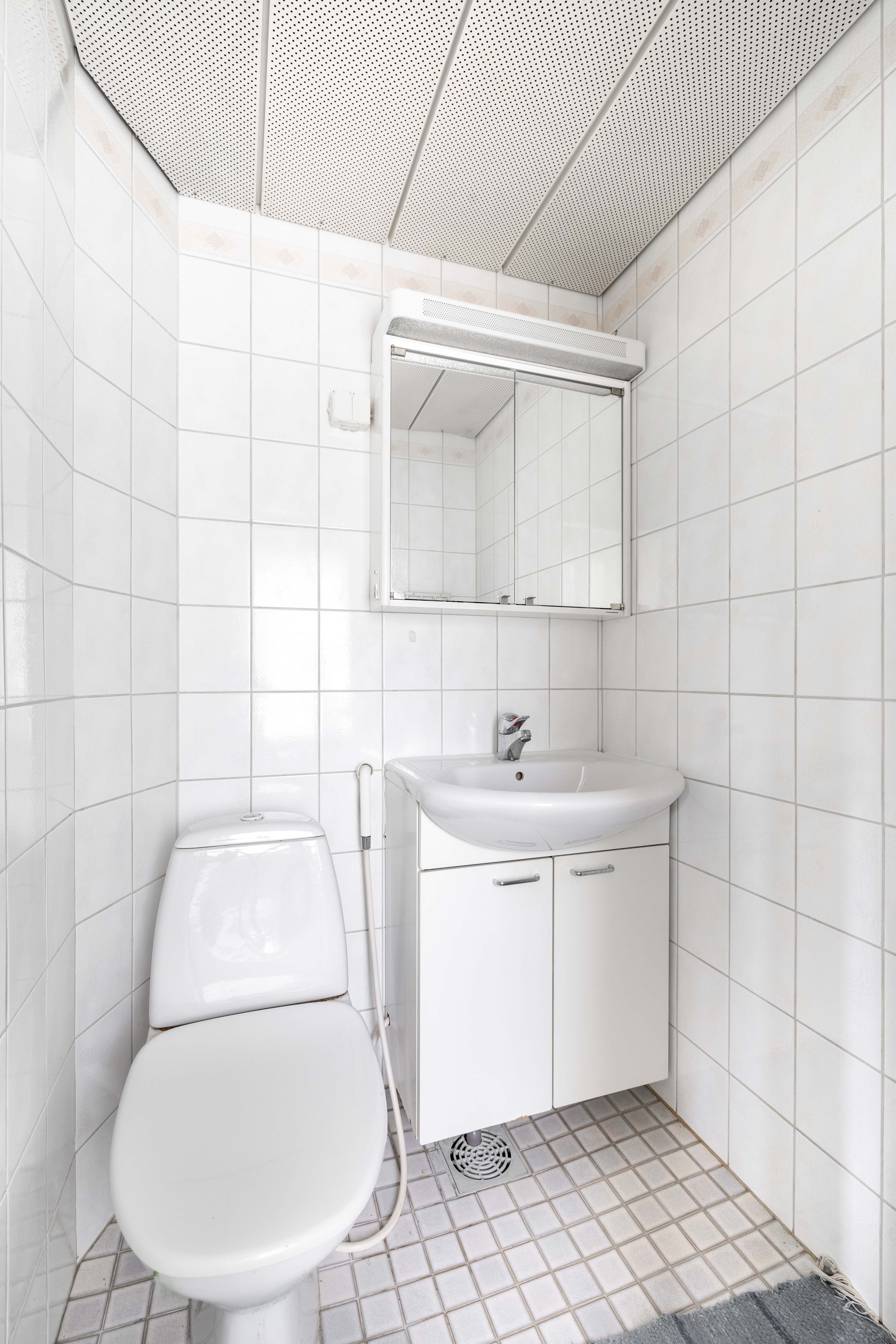 | WC-tilojen kuvaus | Lukumäärä: 2, Peilikaappi (keskikerroksen wc), peili (yläkerran wc), wc-istuin ja bidee-suihku |