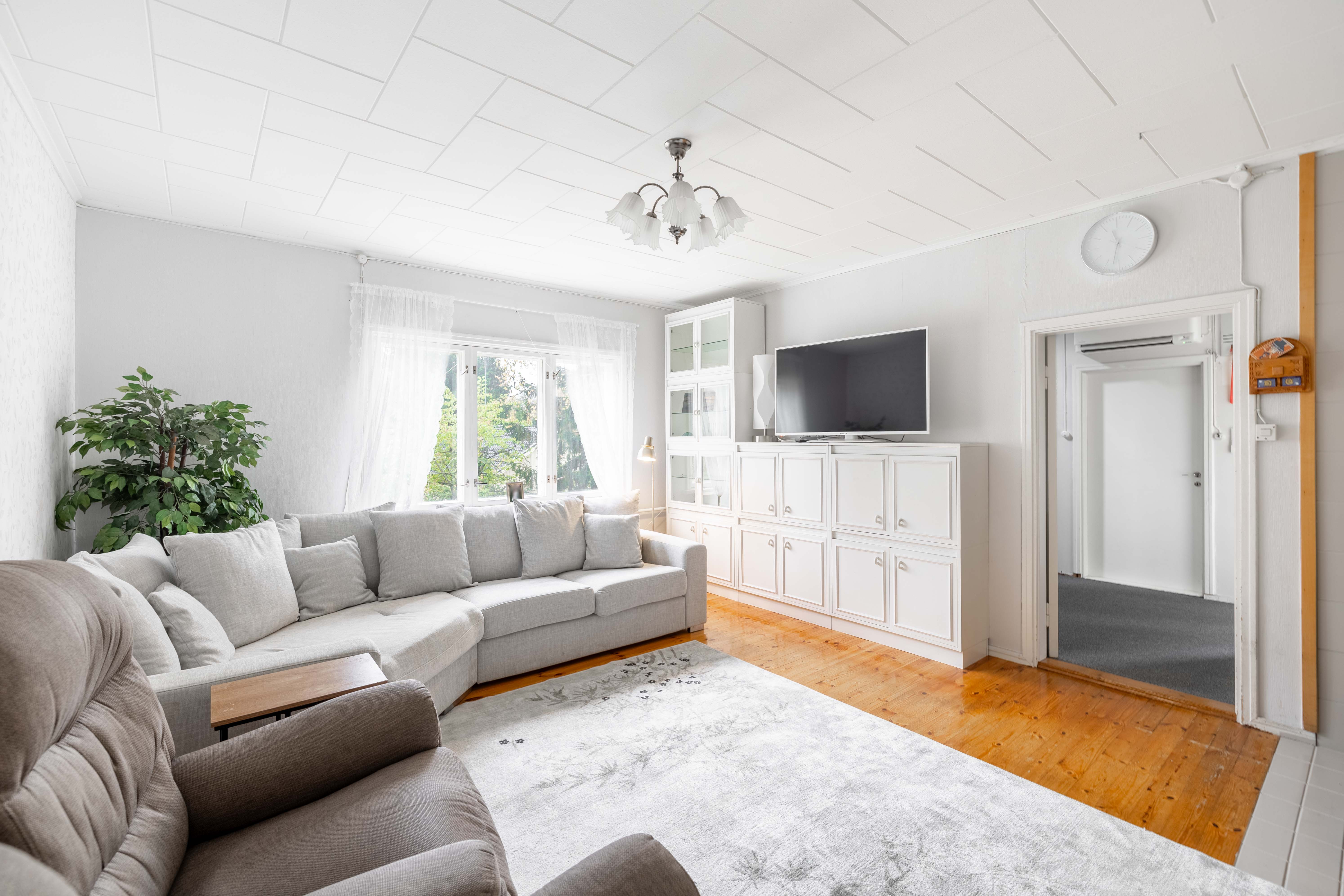 Oma 1560 m² kiinteistö ja 1950-luvulla valmistunut, kolmikerroksinen talo tarjoavat runsaasti mahdollisuuksia perheelle, joka etsii tilavaa kotia rauhalliselta mutta hyvin saavutettavalta alueelta.