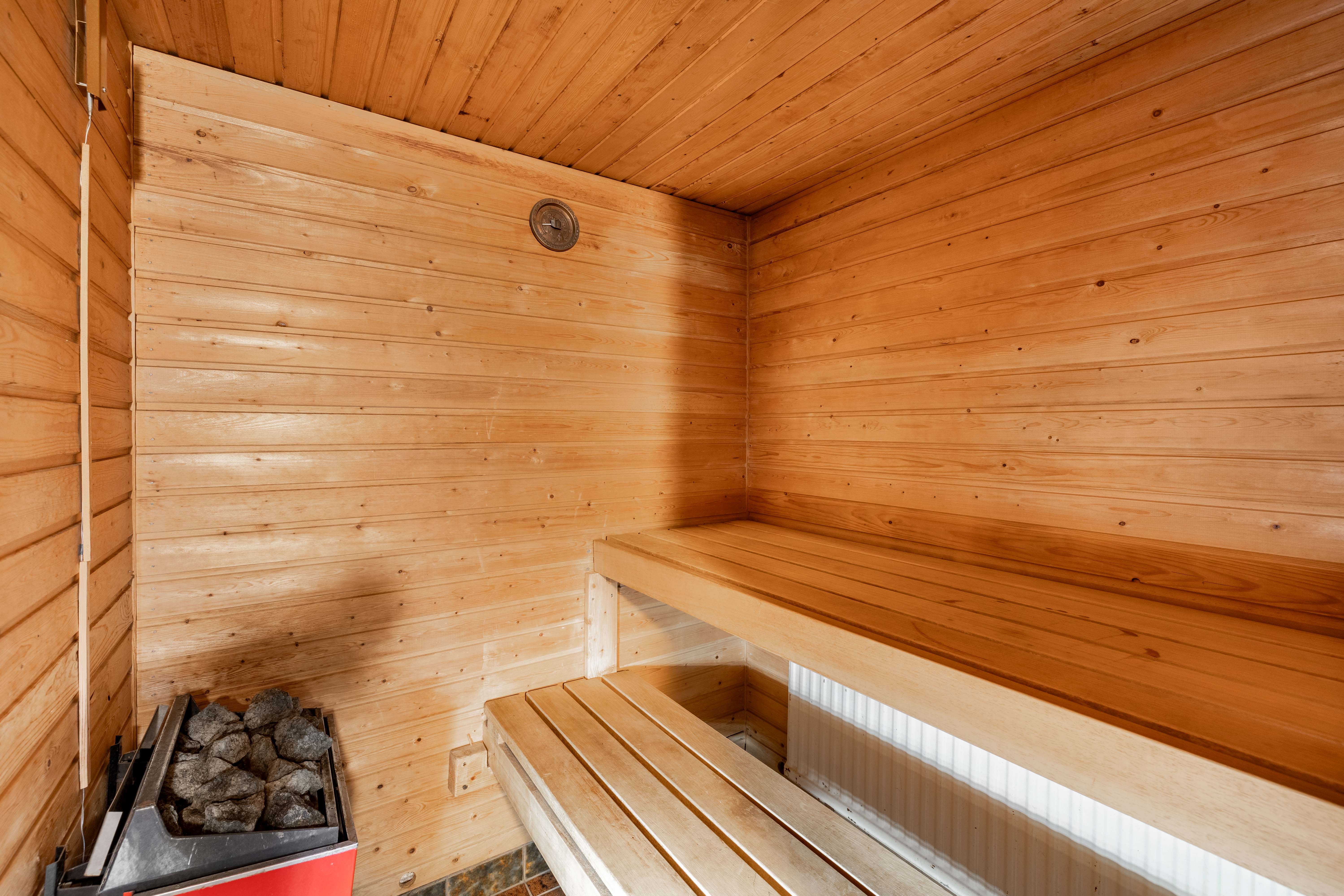 | Saunan kuvaus | Seinät (puu), lattiat (laatta), Sähkökiuas |