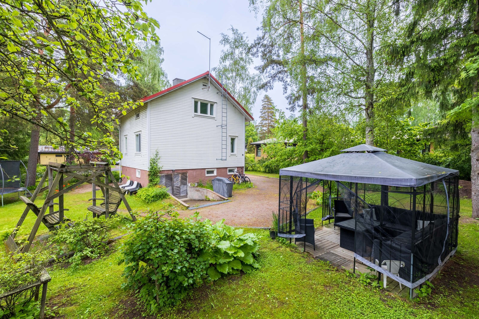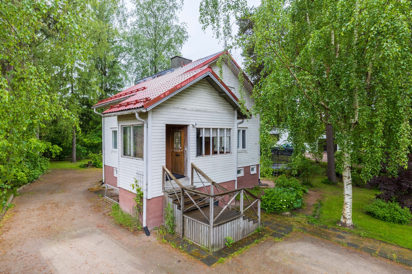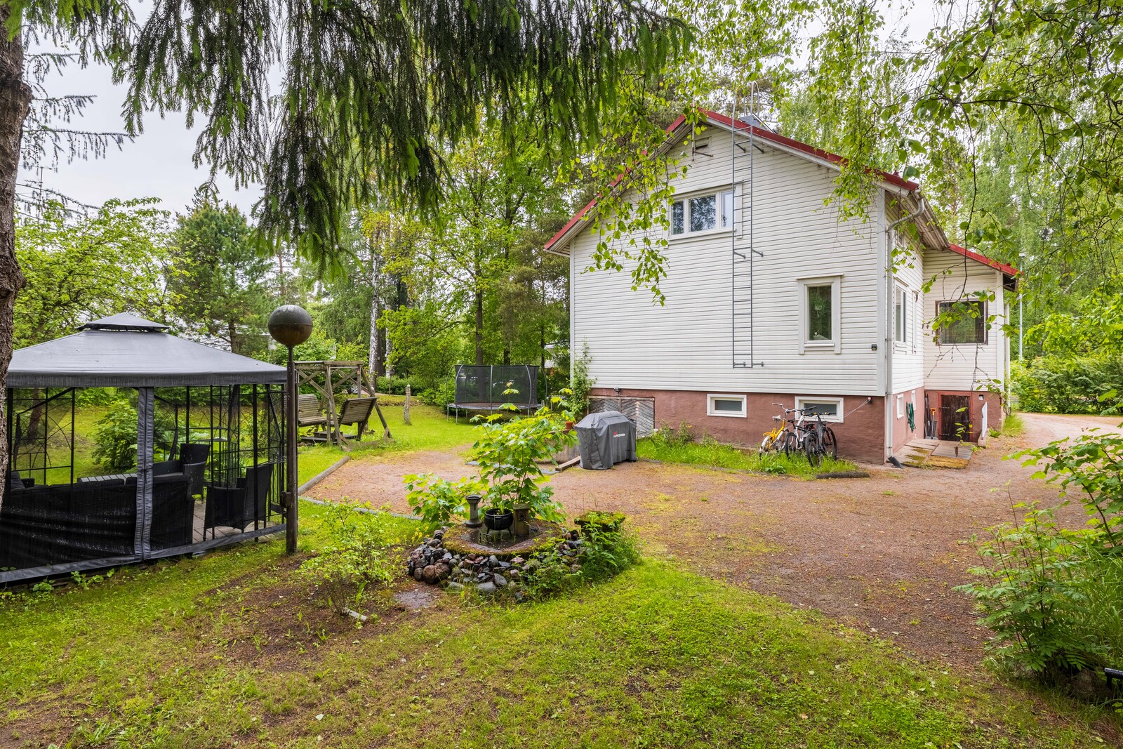 Tervetuloa tutustumaan tähän hurmaavaan kolmikerroksiseen rintamamiestaloon, joka sijaitsee omalla 1215 m² vehreällä tontilla rauhallisen päättyvän kadun varrella. Tässä kodissa yhdistyvät perinteinen tunnelma, toimiva pohjaratkaisu ja luonnonläheinen ympäristö.