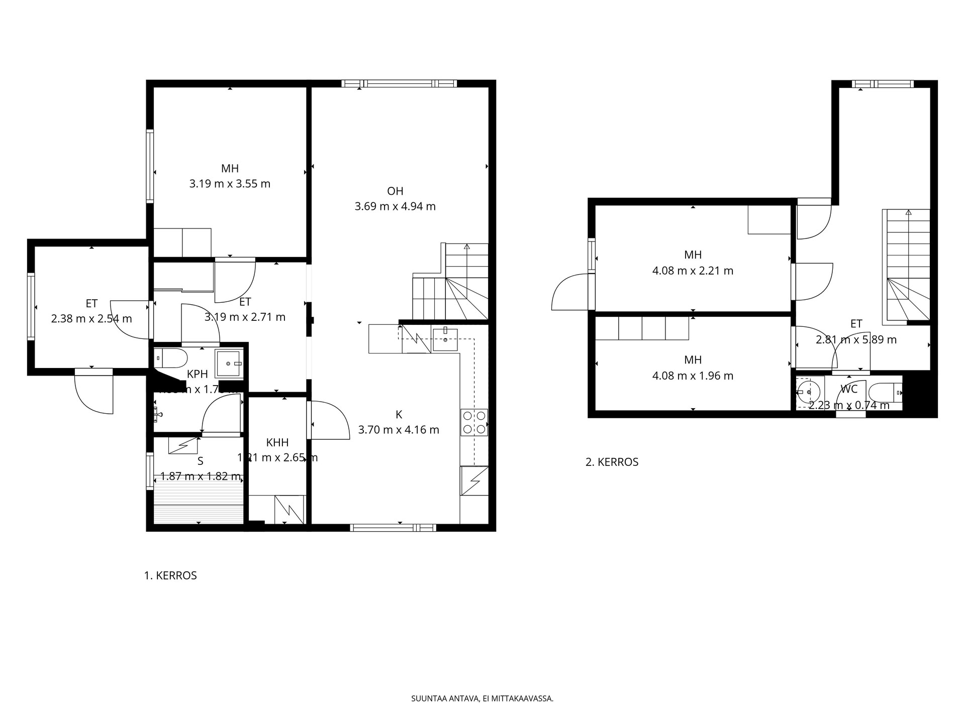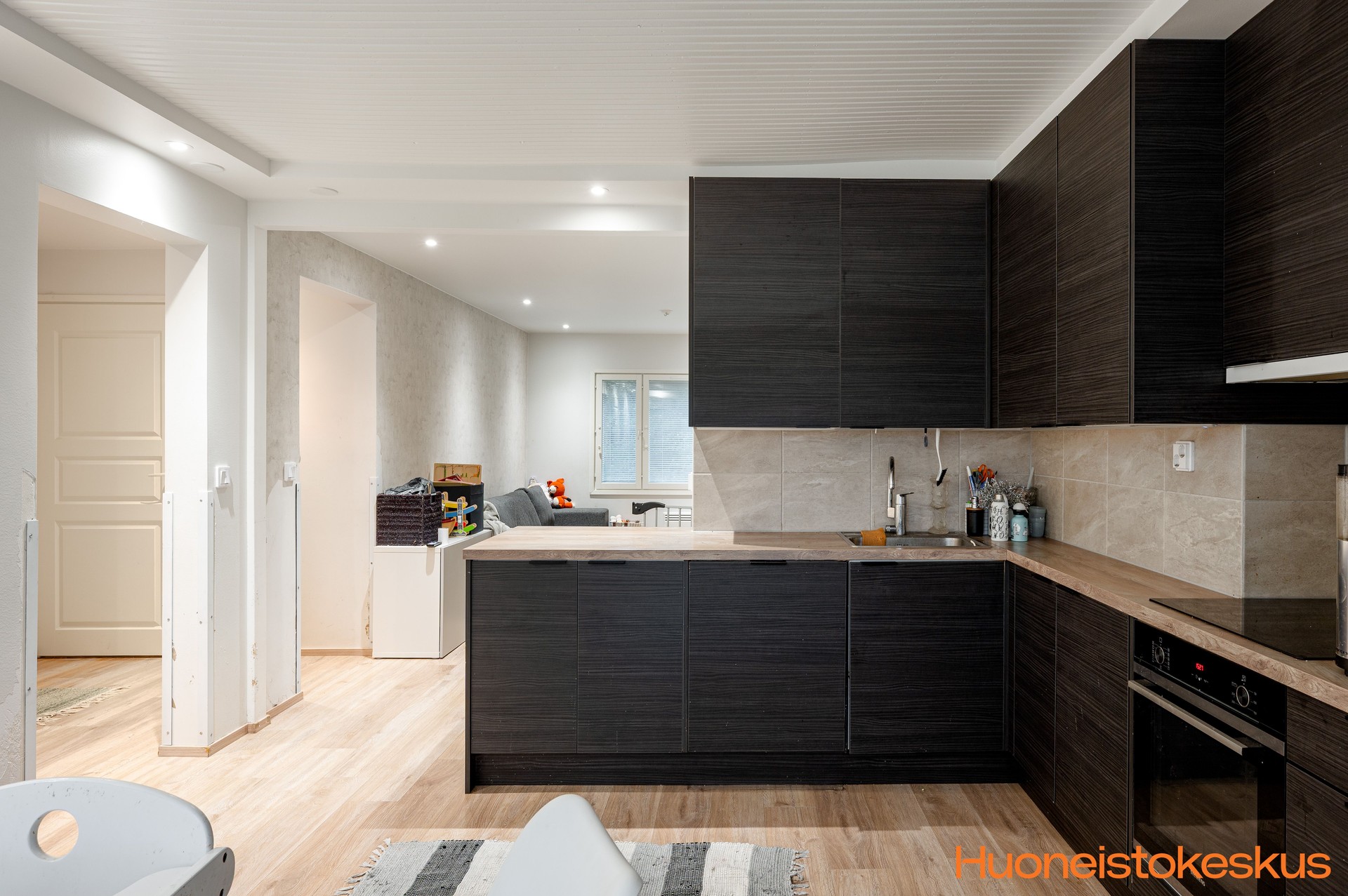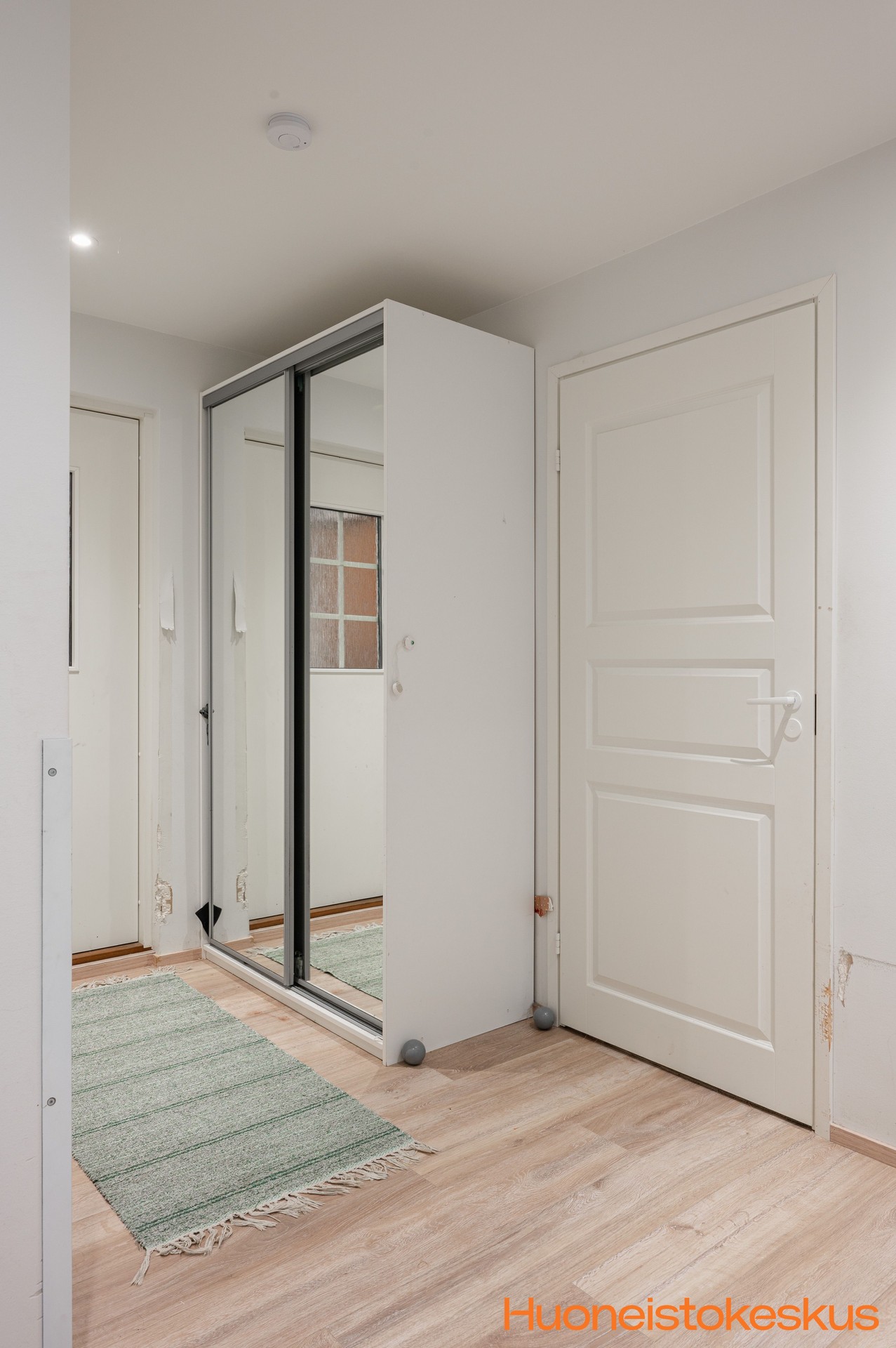 Alakerrassa valoisa olohuone yhdistyy keittiöön, luoden avaran ja viihtyisän kokonaisuuden yhteisiin hetkiin. Lisäksi alakerrasta löytyvät sauna ja kylpyhuone, pieni kodinhoitohuone sekä yksi makuuhuone – käytännöllinen ratkaisu moneen elämäntilanteeseen.