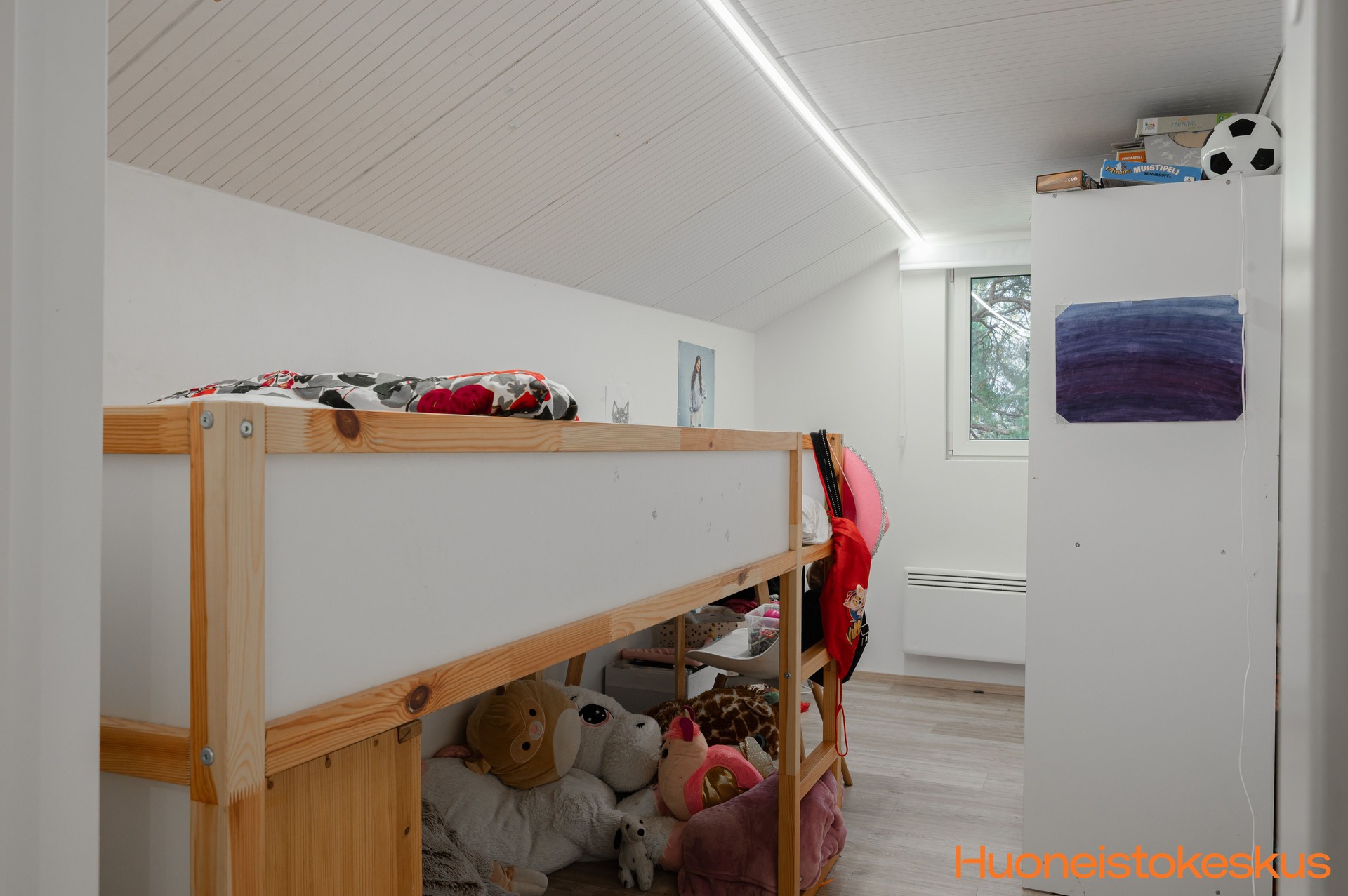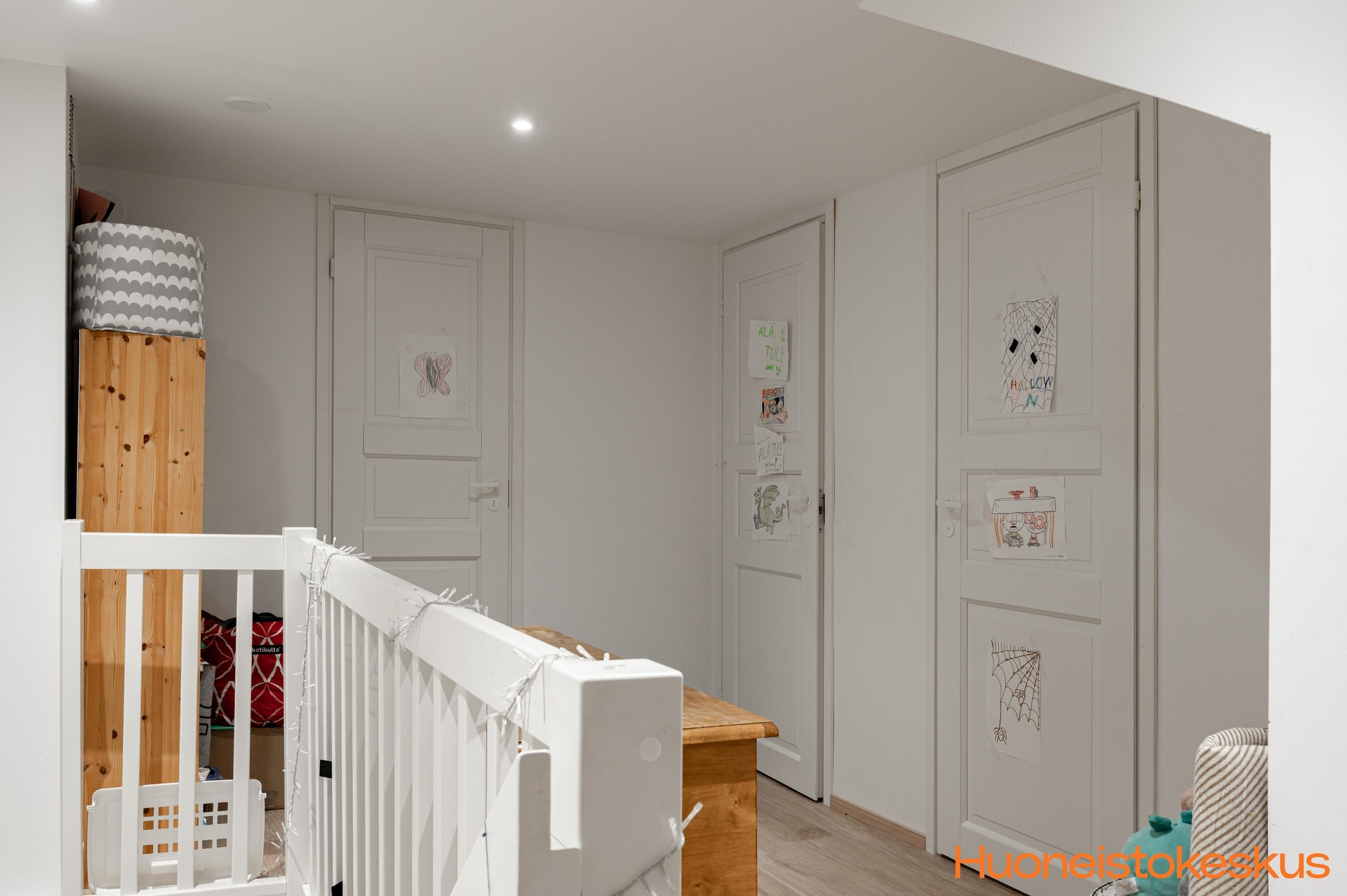 Yläkerta on remontoitu asuinkäyttöön vuonna 2022, ja siellä on kaksi makuuhuonetta sekä erillinen WC. Tyylikkäästi uudistettu yläkerta tuo kotiin modernia ilmettä ja lisää asumismukavuutta.