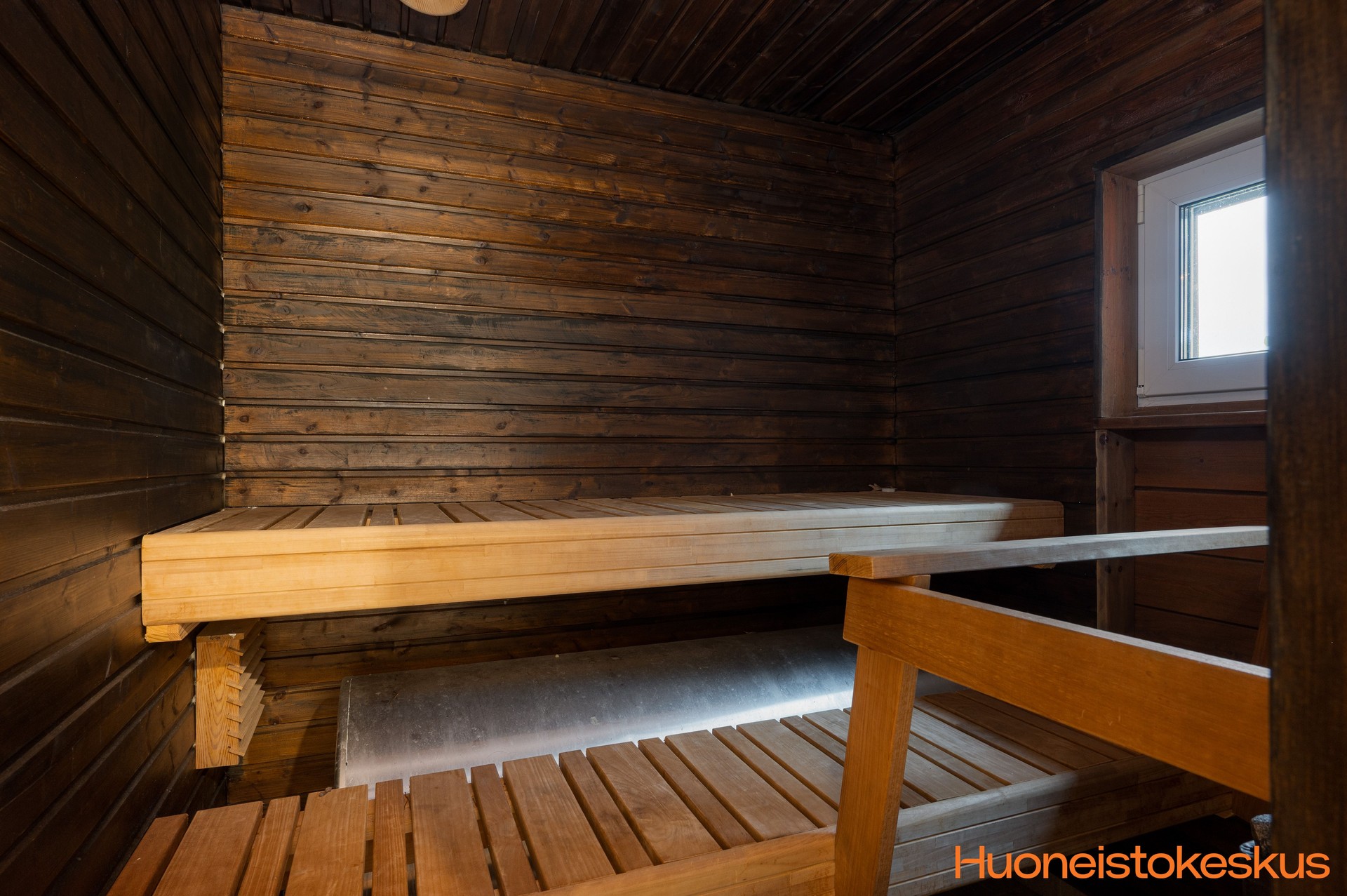 | Saunan kuvaus | Seinät (paneeli), lattiat (laatta), Sähkökiuas |