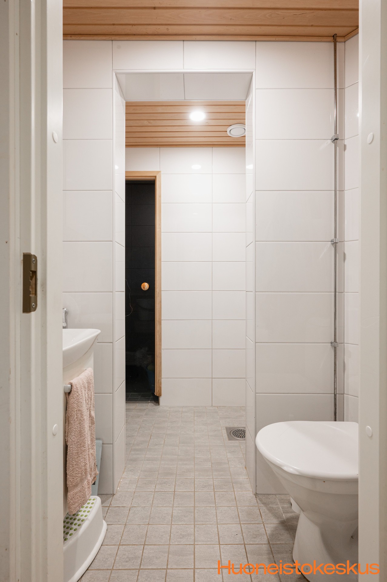 | Kylpyhuoneen kuvaus | WC-istuin, suihku, peilikaappi, allaskaappi ja bidee-suihku, seinät (kaakeli), lattiat (laatta) |