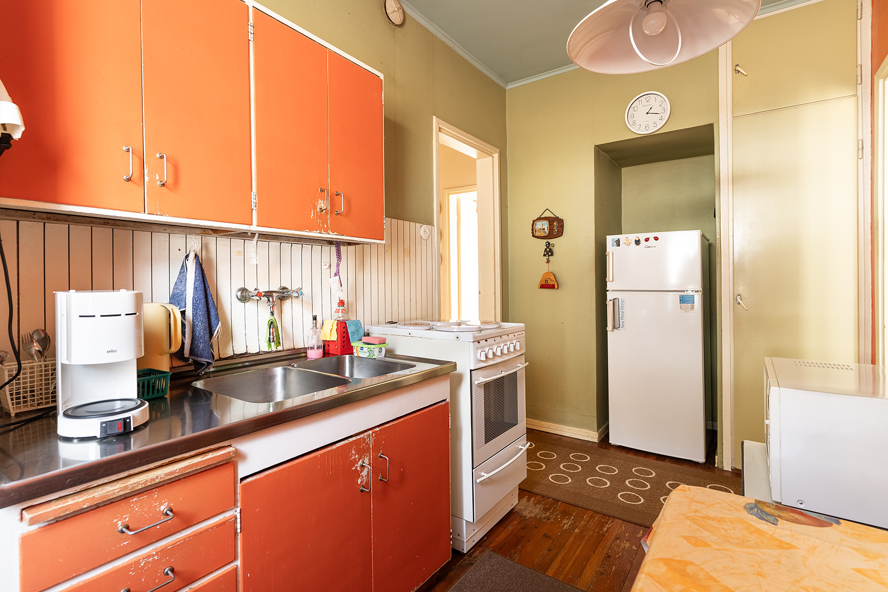 | Lisätietoja pinta-alasta | Asuinpinta-alat on saatu rakennuslupakuvista mittaamalla, eikä niitä ole tarkistusmitattu, joten ne saattavat oleellisestikin poiketa nykymääräysten mukaan mitattavista pinta-aloista. Kokonaispinta-ala on saatu ulkomitoista 8,1 m x 8,4 m, Ei |