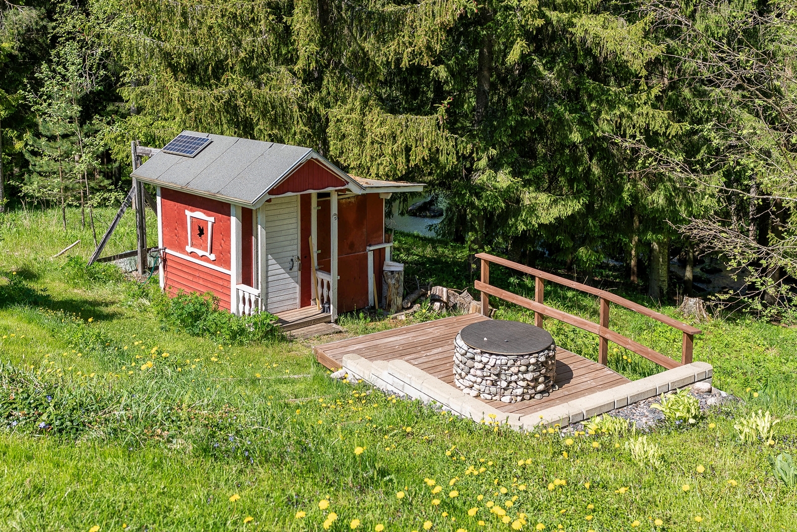 koko yhtiön osalta, punainen rivipeltikate. Takajulkisivun ikkunapellityksien