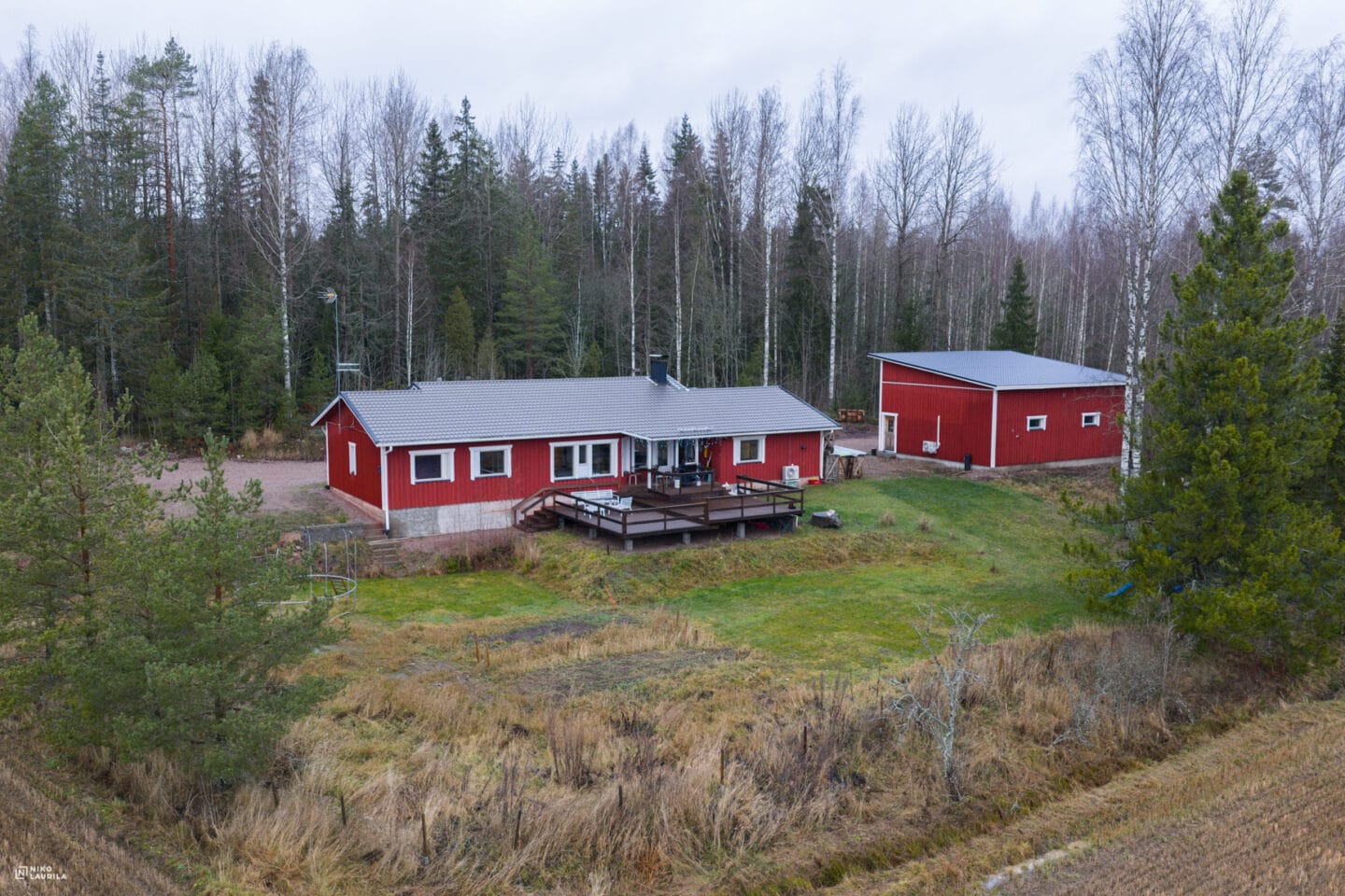 Maaseudun rauhassa Myrskylän Pakilassa sijaitseva mukava omakotitalokokonaisuus isommallekin perheelle. Talossa 4 makuuhuonetta, iso keittiö ja avara olo- ja takkahuonekokonaisuus ja kylpyhuone jossa poreamme, tietty sauna ja kodinhoitotilat sekä autotalli. Tontilla omakotitalon lisäksi tänä vuonna 2025 lopputarkastettu iso autohalli ja viihtyisä pihasauna sekä iso ihana piha, jossa lapset hyvin mahtuu temmeltämään. Talon isolta terassilta hulppeat peltonäkymät.