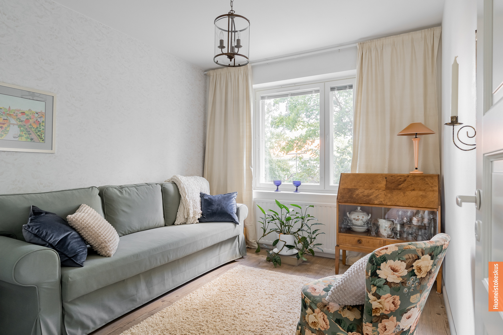 | Olohuoneen kuvaus | Seinät (maali ja lasikuitutapetti), lattiat (laminaatti), Koko huoneiston lattiat uusittu vuonna 2018 |