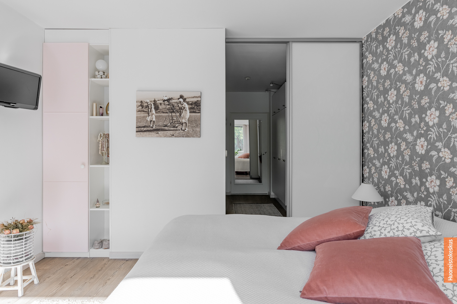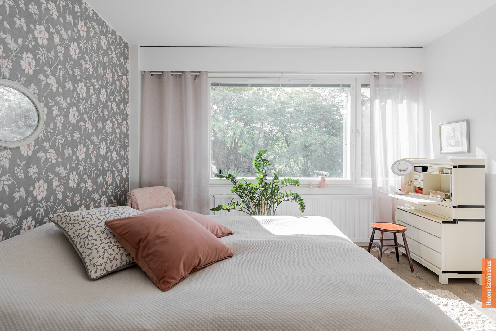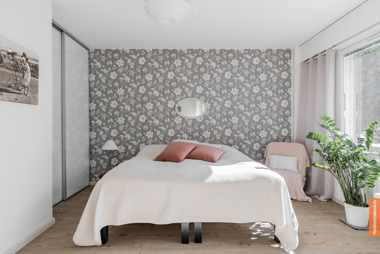 | Makuuhuoneen kuvaus | Lukumäärä: 2, seinät (tapetti ja maali), lattiat (laminaatti) |