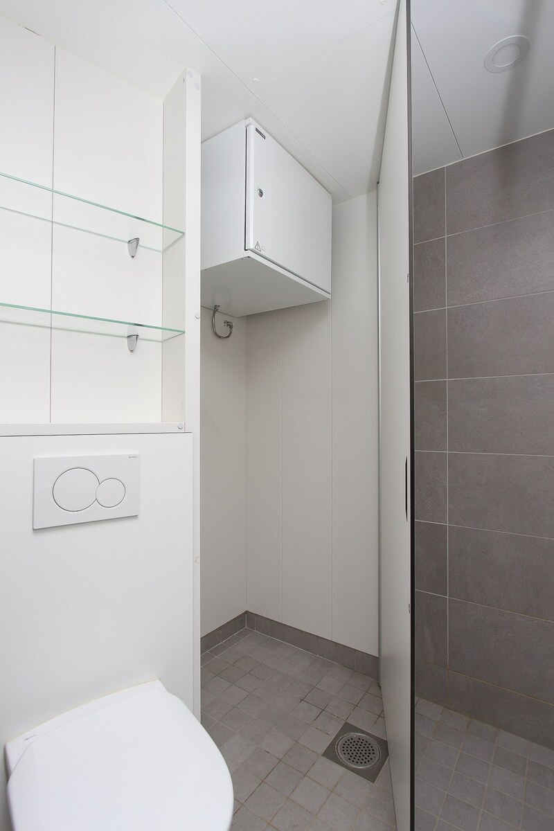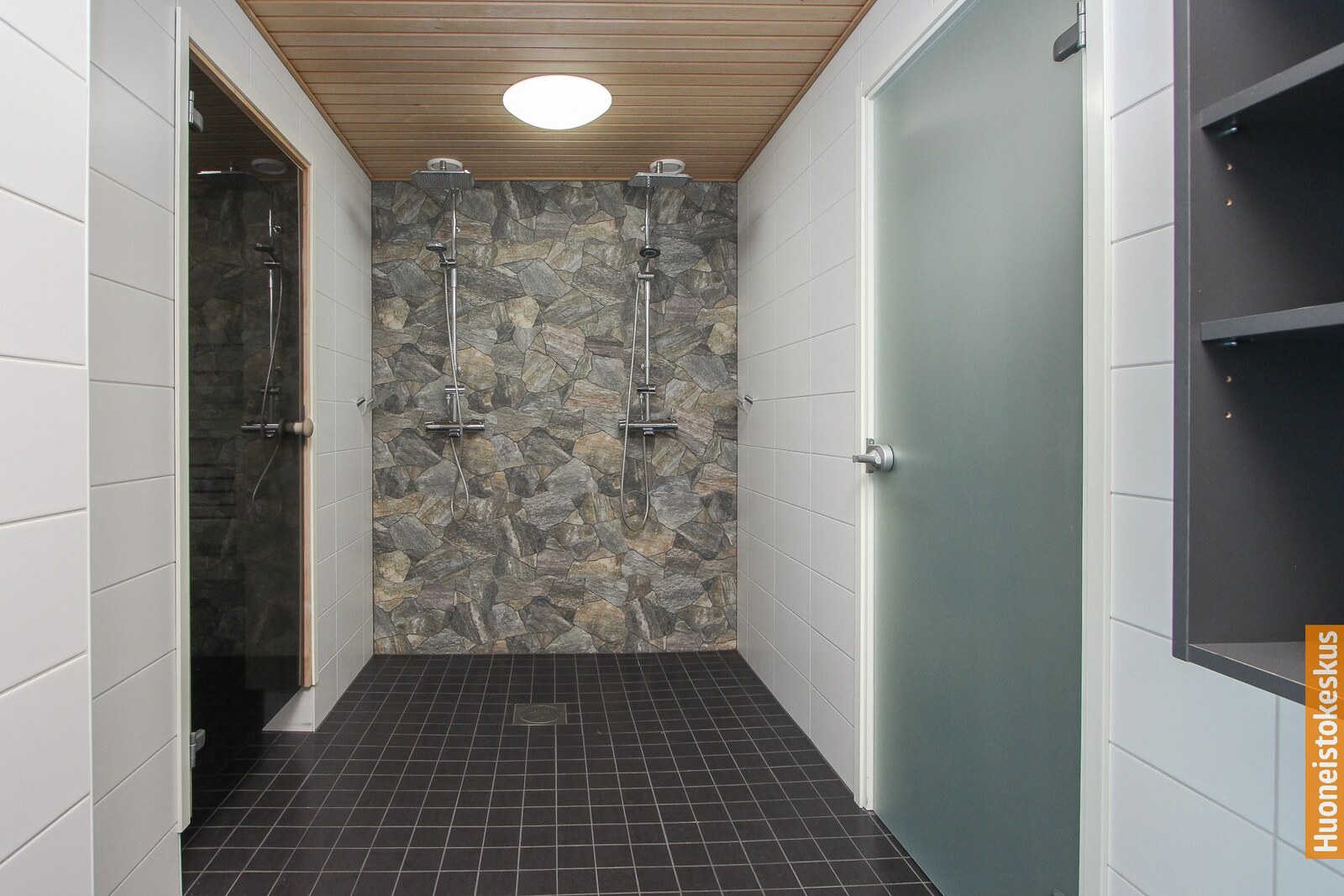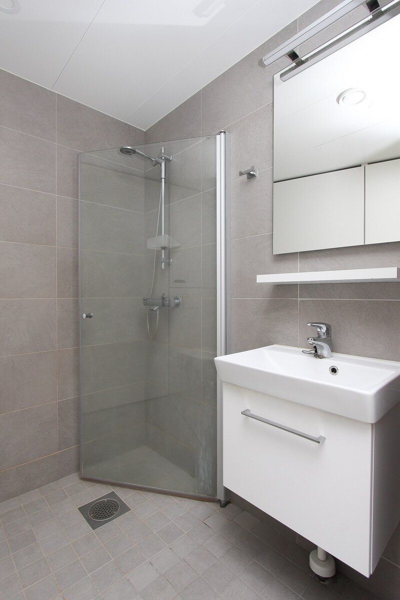 Pesukoneliitäntä, lattialämmitys, peili ja suihku, seinät (kaakeli), lattiat (laatta) |