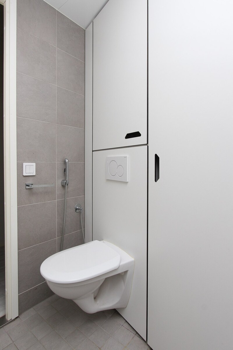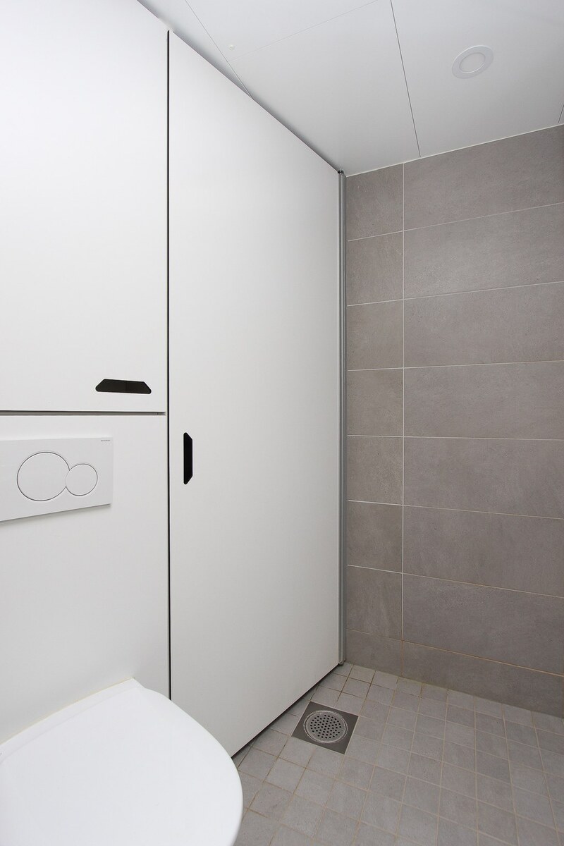 Kylpyhuone laatoitettu. |