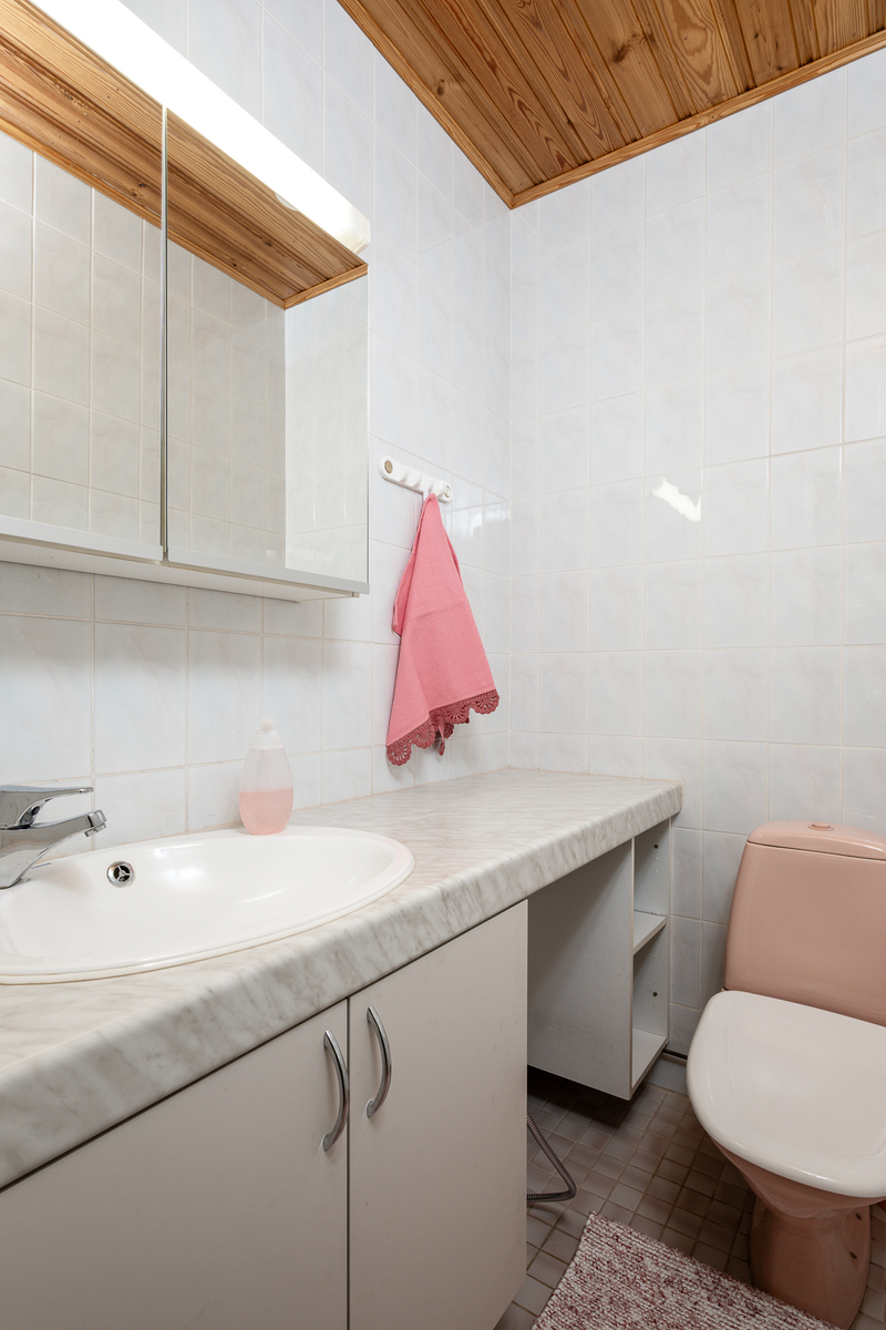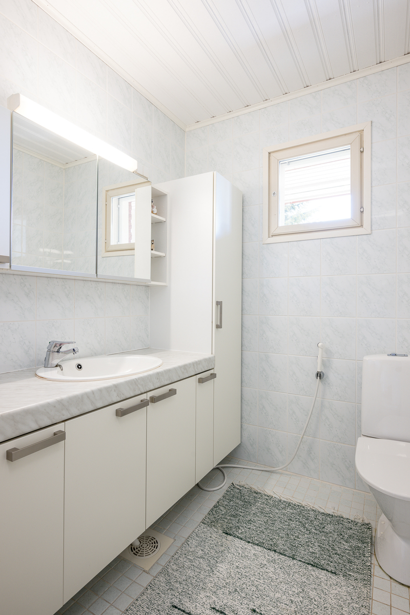 Lukumäärä: 2, Peilikaappi, lattiakaivo ja lattialämmitys, seinät (Kaakeli), lattiat (Laatta) |