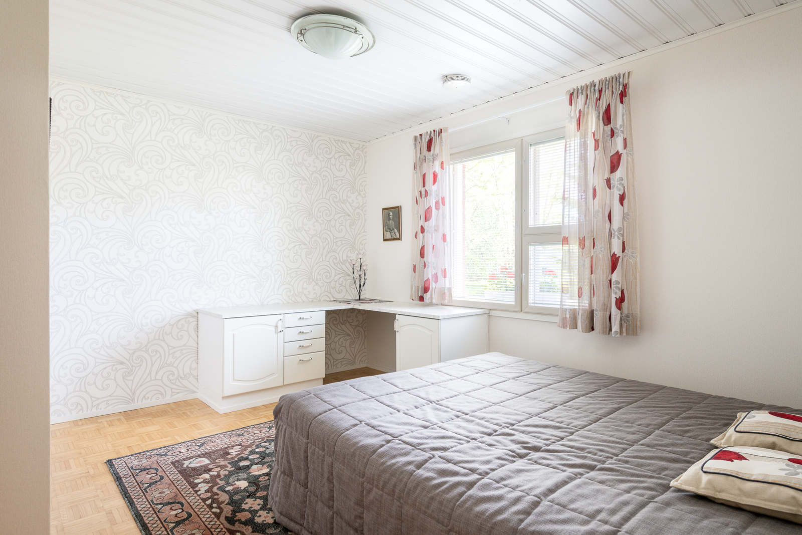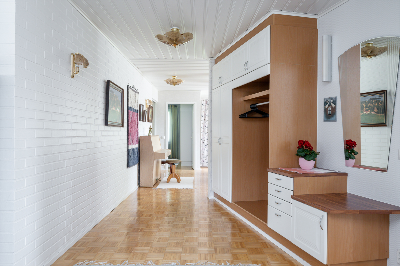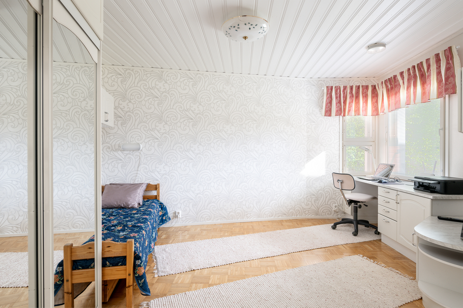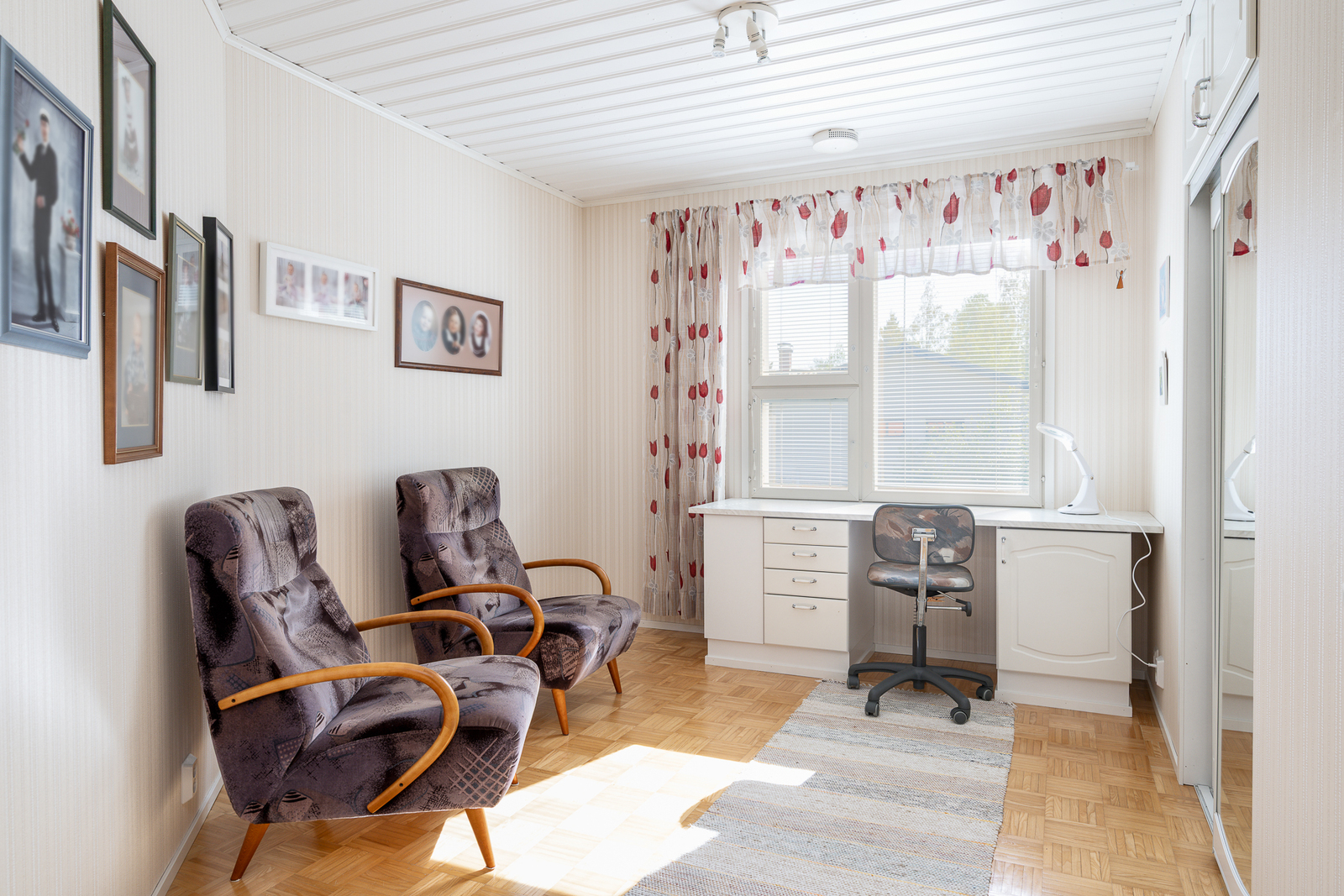 Seinät (tapetti), lattiat (parketti) |