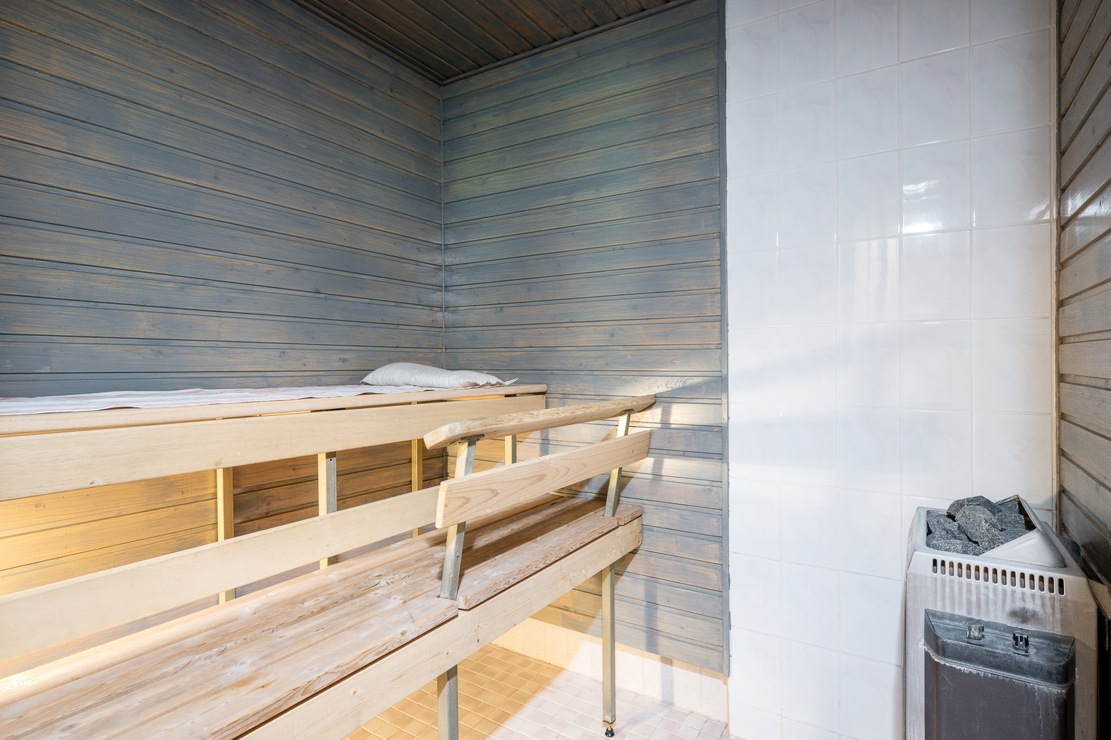 Seinät (puu), lattiat (laatta), Sähkökiuas |