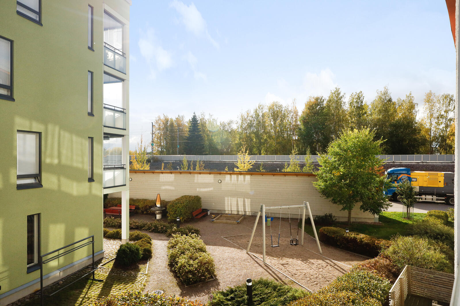 Hyväpohjainen kulmakaksio omalla tontilla olevan yhtiön toisessa kerroksessa.