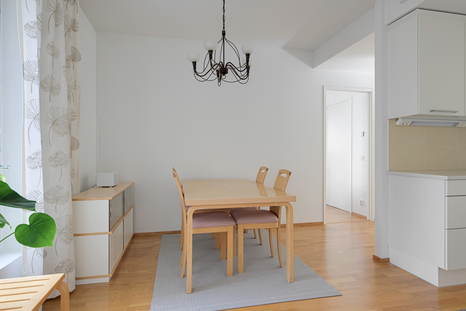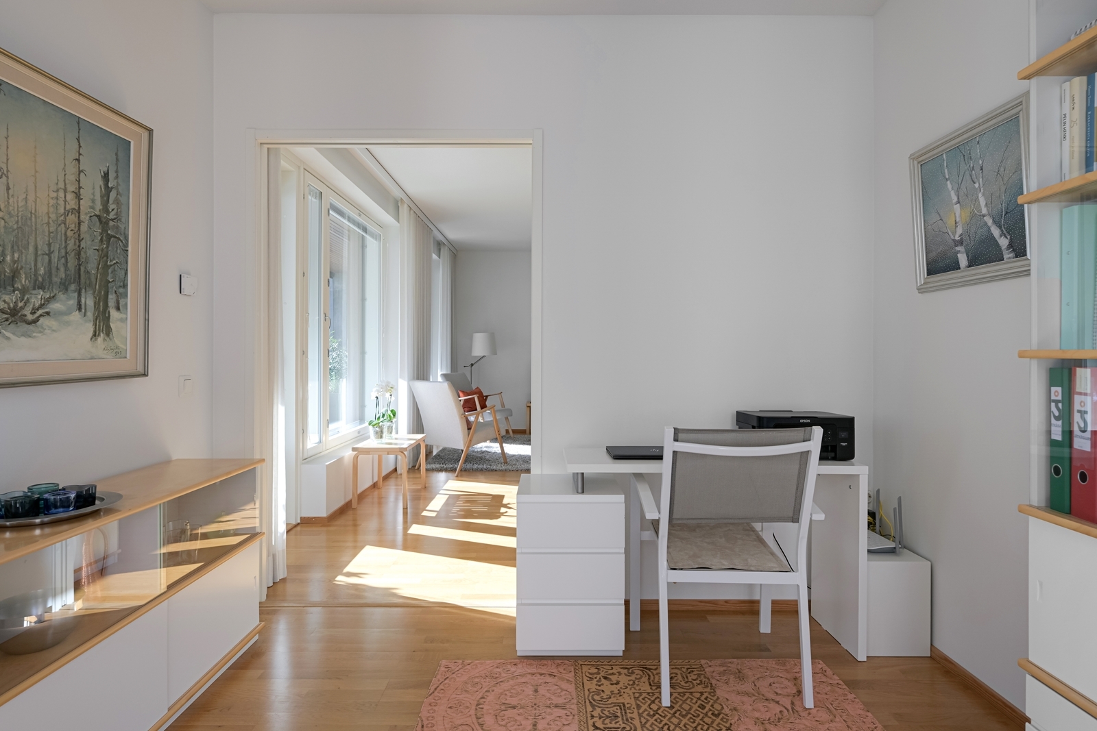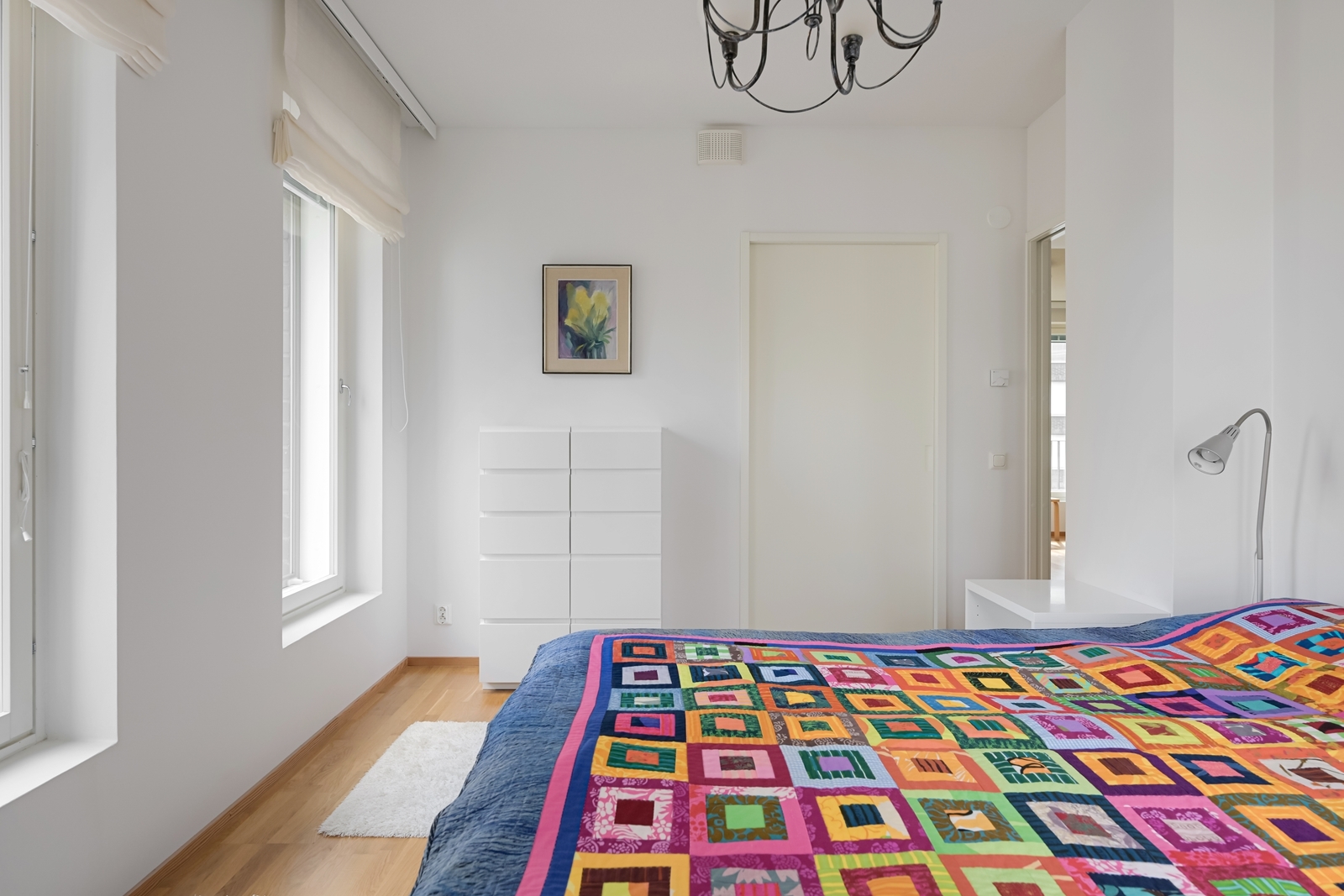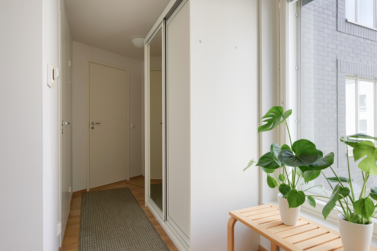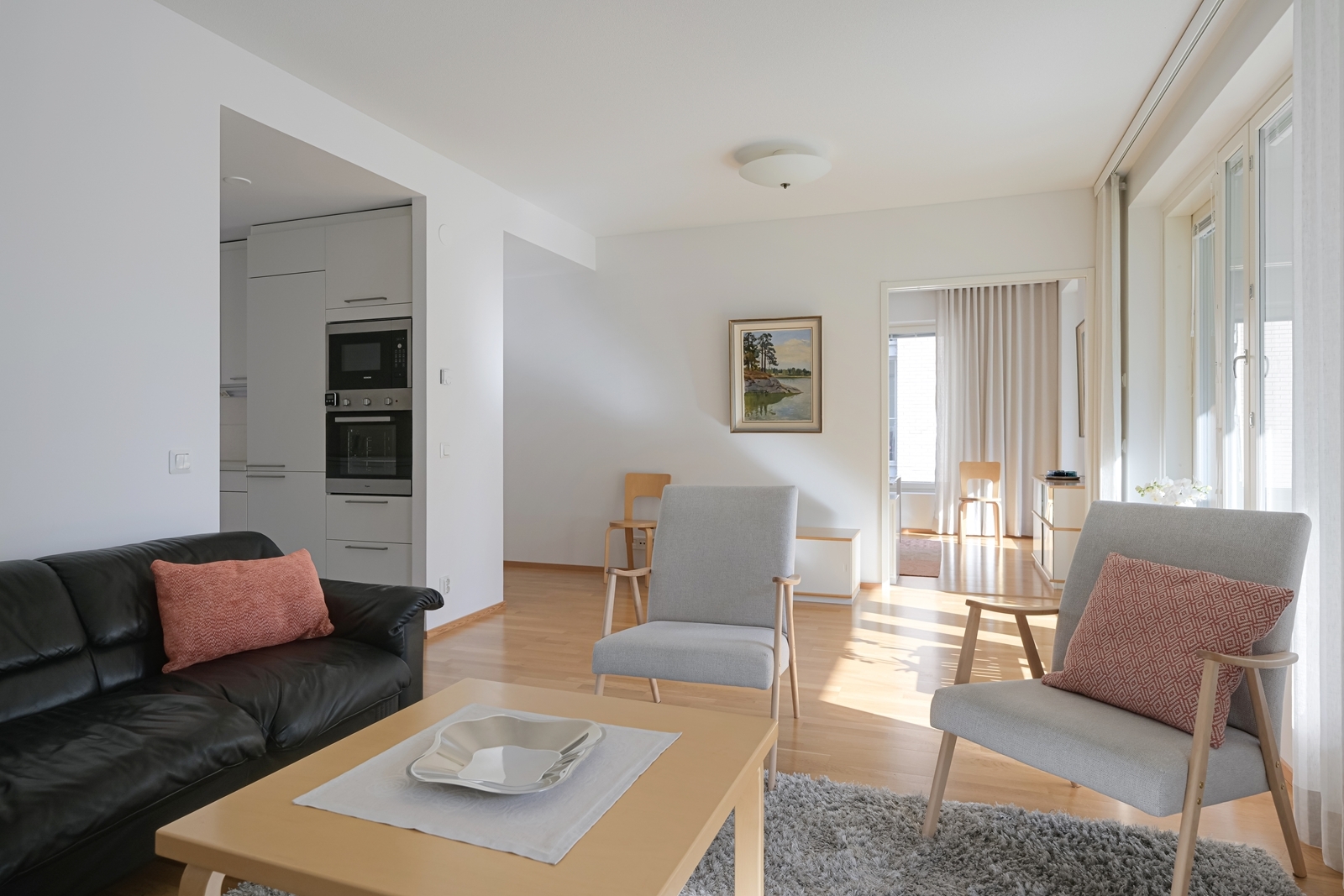 Vuonna 2014 valmistuneessa Hitas-taloyhtiössä sijaitseva huoneisto hurmaa avaralla tunnelmallaan ja suurilla ikkunoilla, joita avautuu kolmeen eri suuntaan. Toimiva ja hyvin varusteltu keittiö, jonka yhteydessä on luonteva ruokailutila. Olohuoneesta ja toisesta makuuhuoneesta on käynti koko huoneiston levyiselle hulppealle lasitetulle terassille,