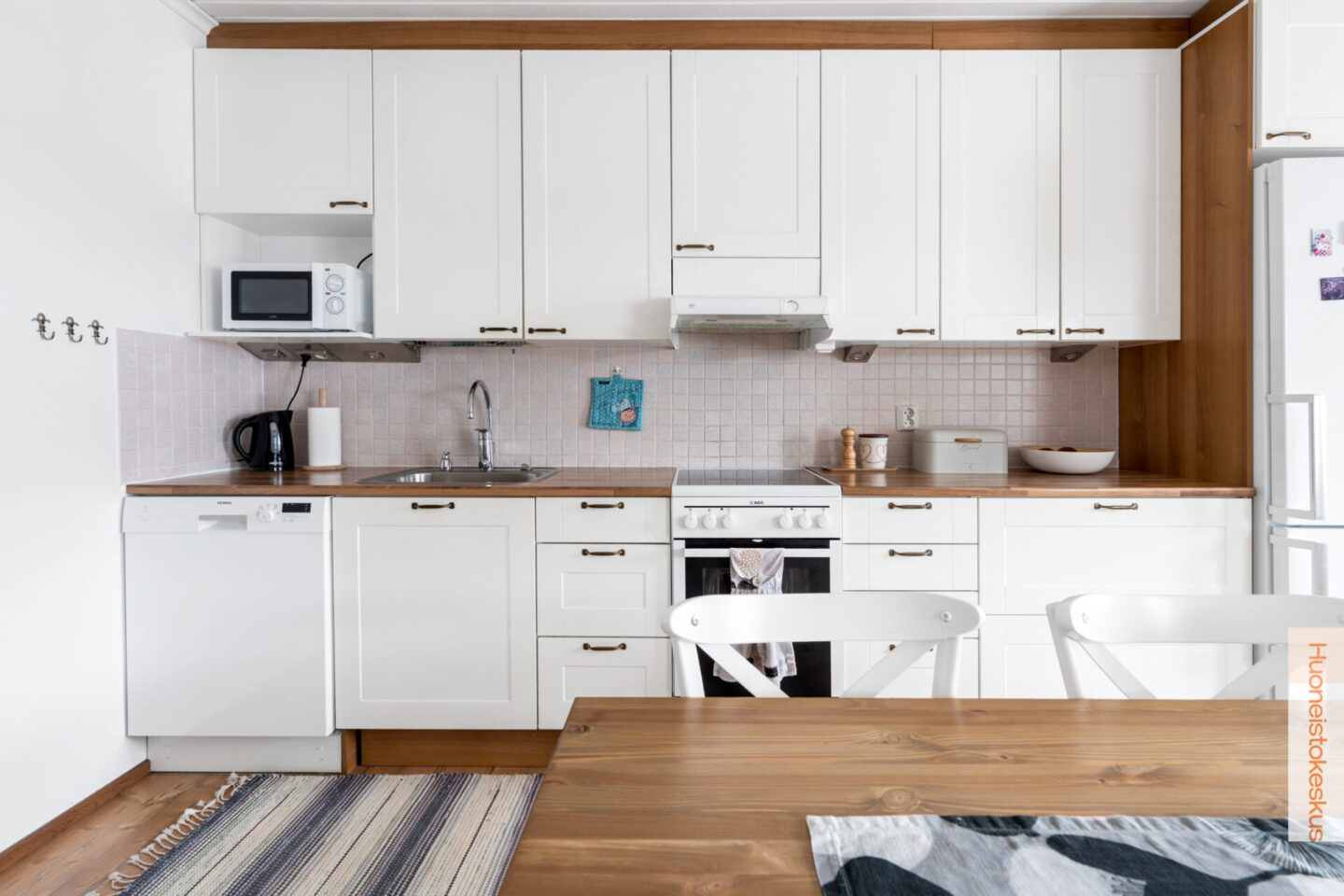 | Keittiön kuvaus | Liesi (Keraaminen liesi), työtasot (laminaatti), seinät (maali ja kaakeli), lattiat (laminaatti), erillinen pakastin (Arkkupakastin), uuni (Keraamisella liedellä), liesituuletin (Hormiin, ei voi itse säätää puhallustehoa), jääkaappipakastin ja astianpesukone, Iskun kaapistot. |