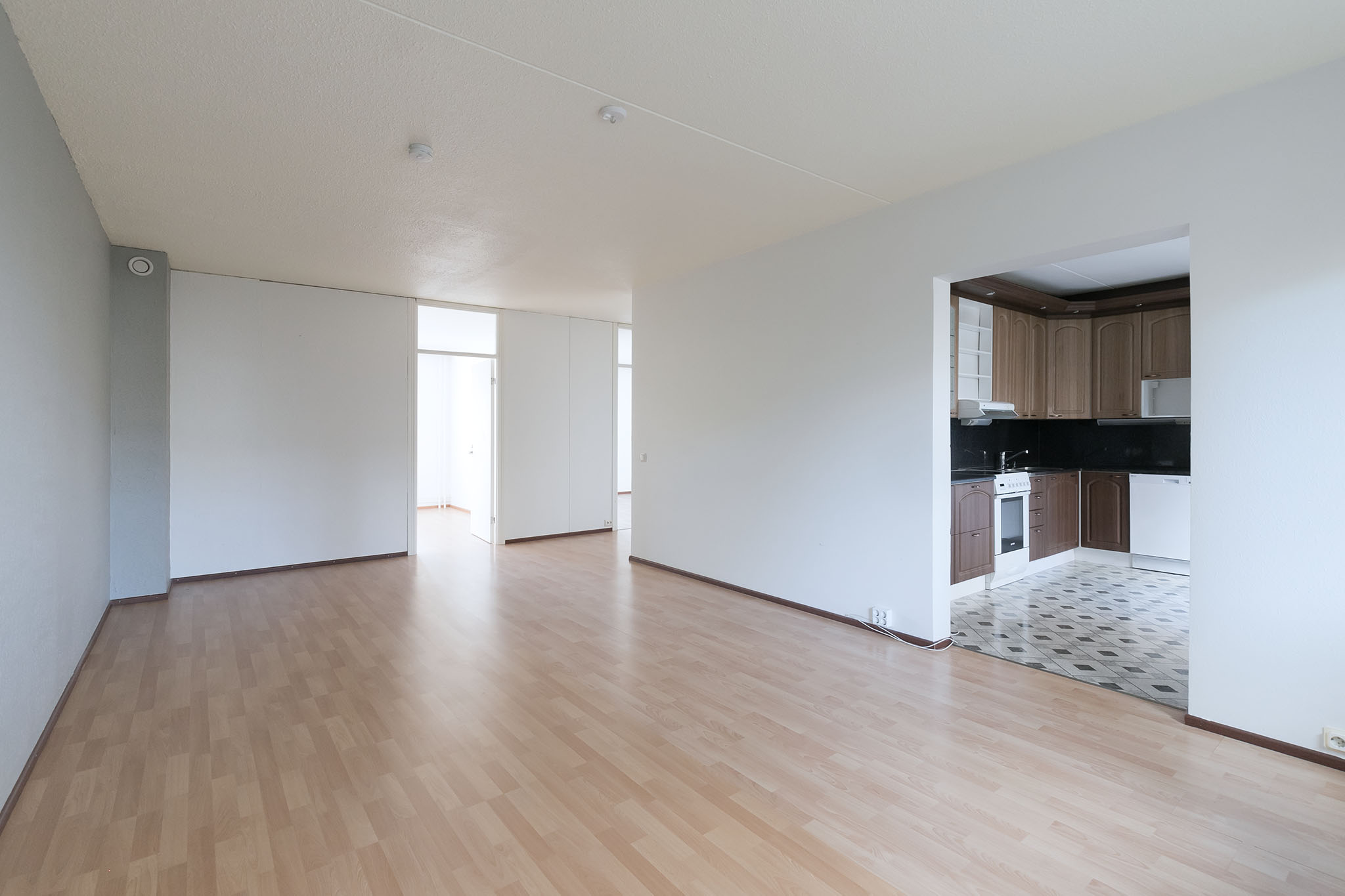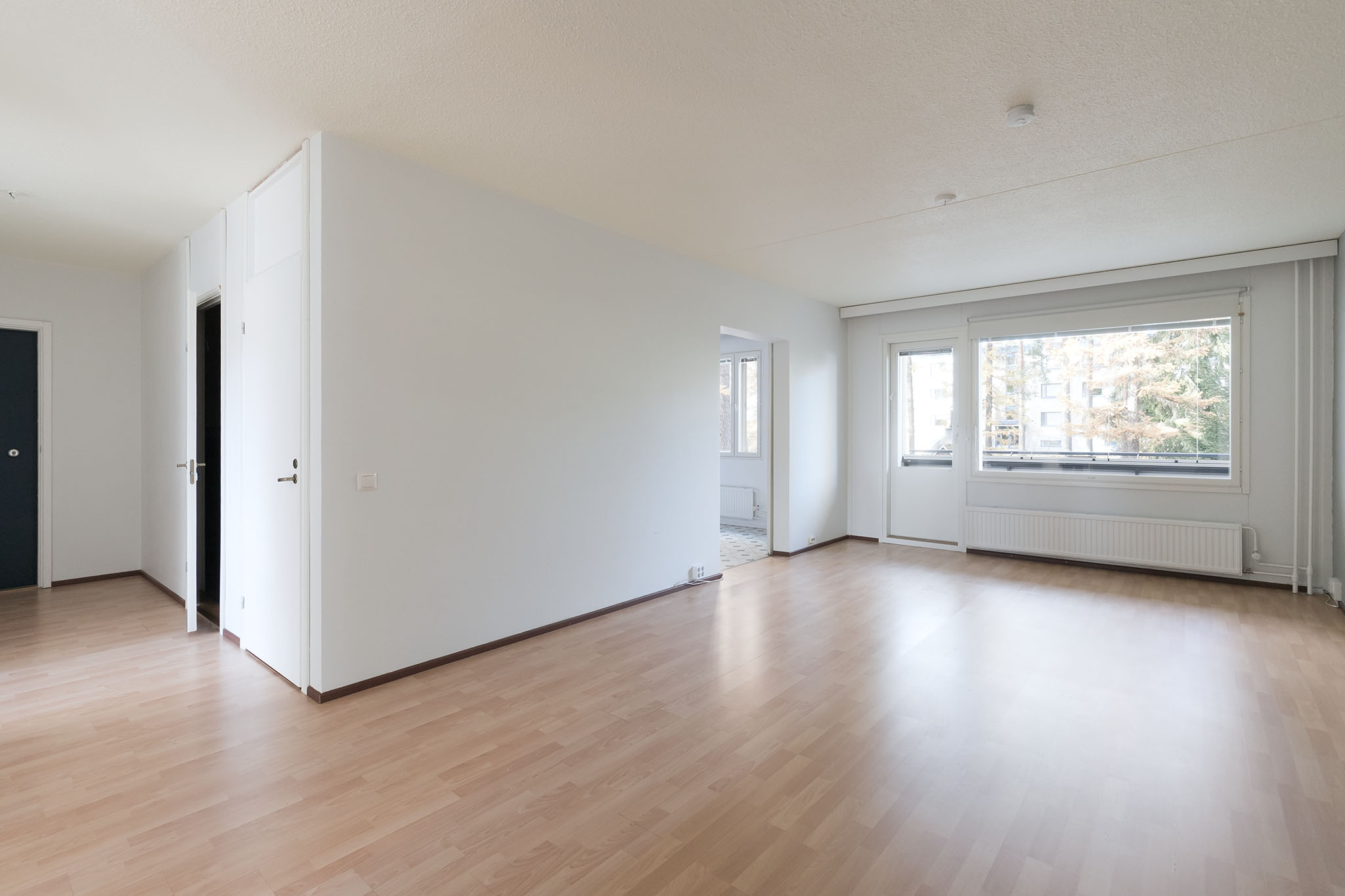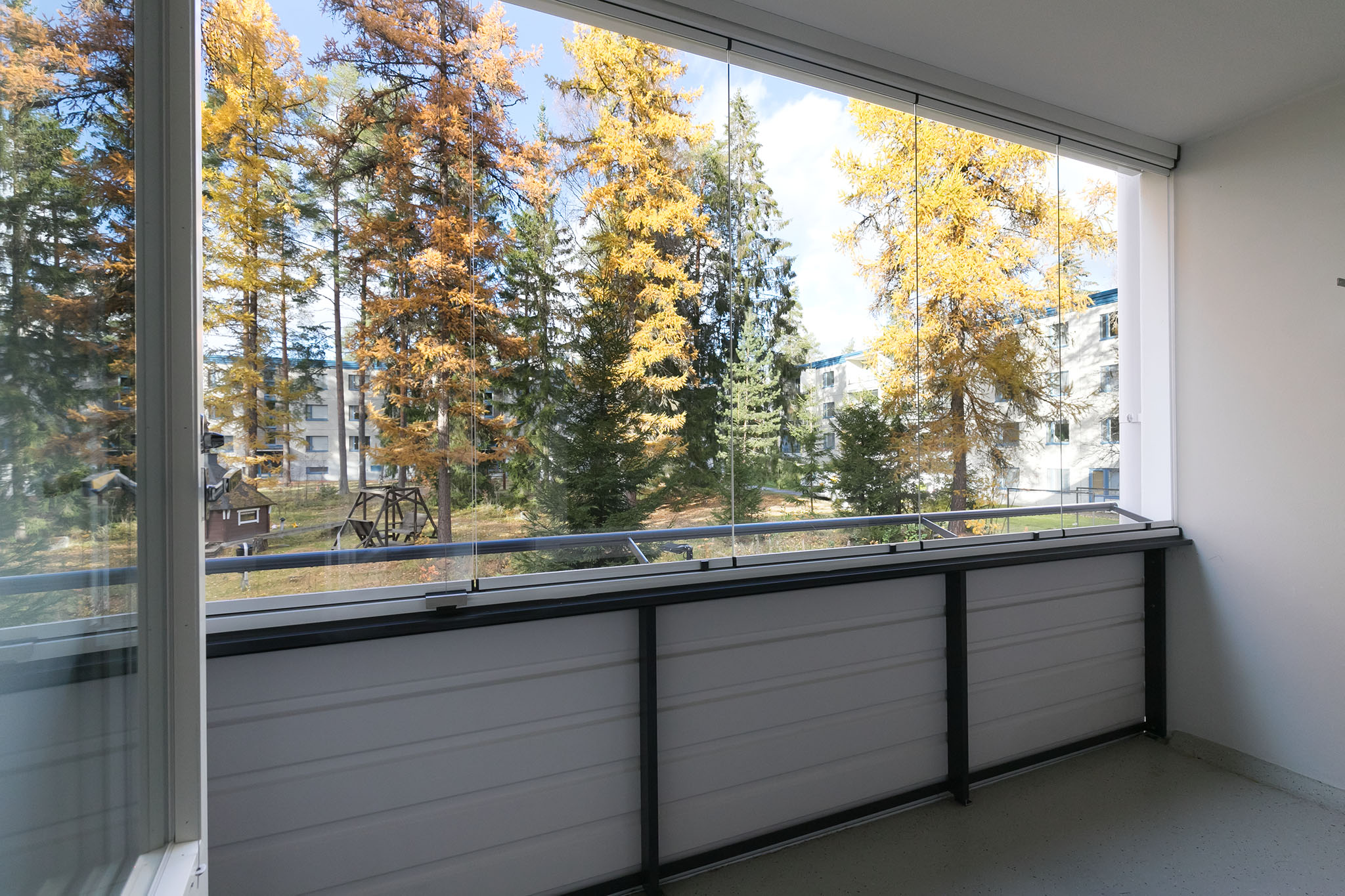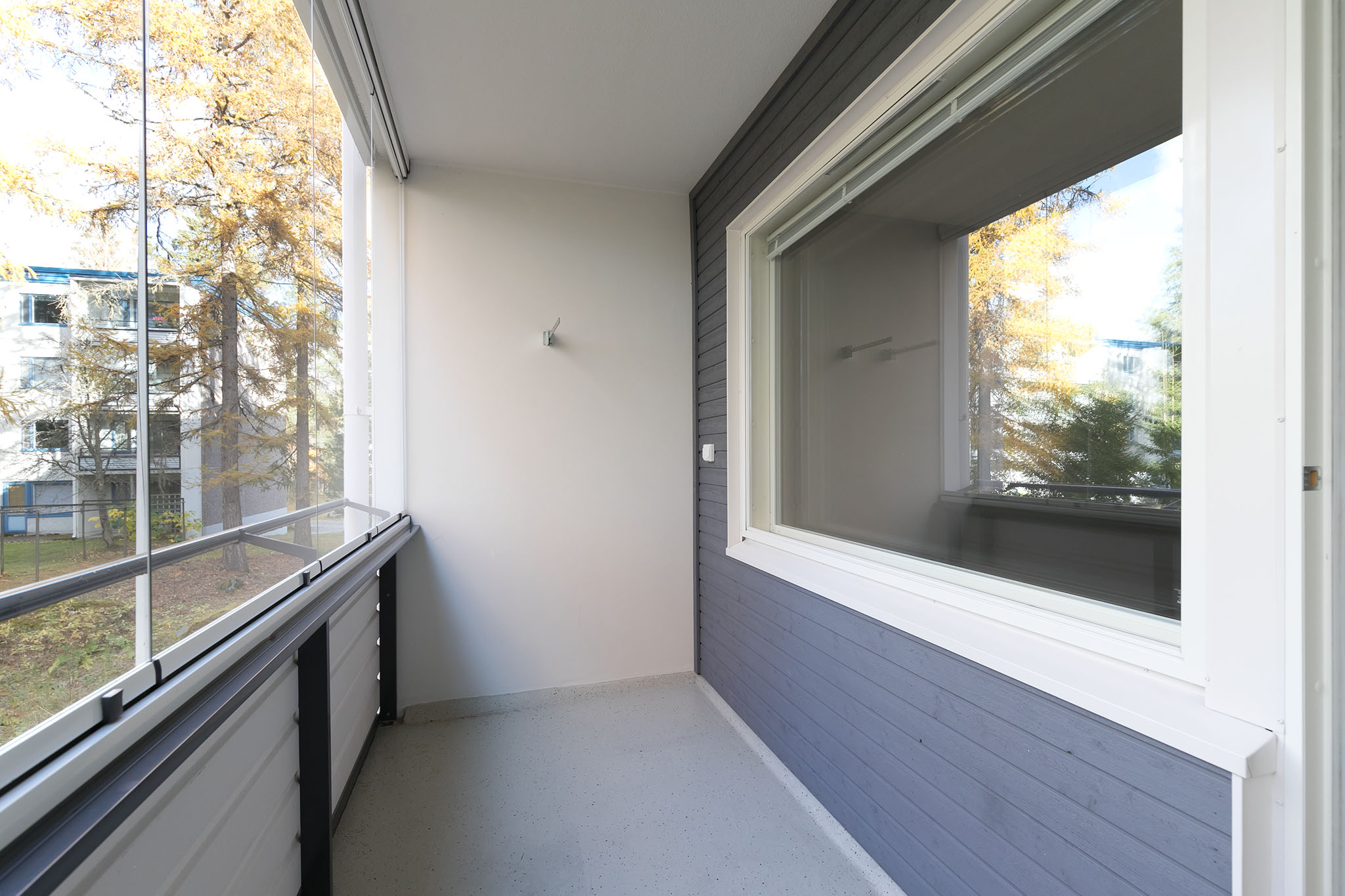 Asunnossa on kaksi makuuhuonetta, tilava olohuone ja käytännöllinen keittiö, jossa on kaikki tarvittavat varusteet. Kylpyhuone on remontoitu ja tarjoaa modernit mukavuudet. Lisäksi asunnossa on lasitettu parveke, josta avautuu näkymät taloyhtiön takapihalle.