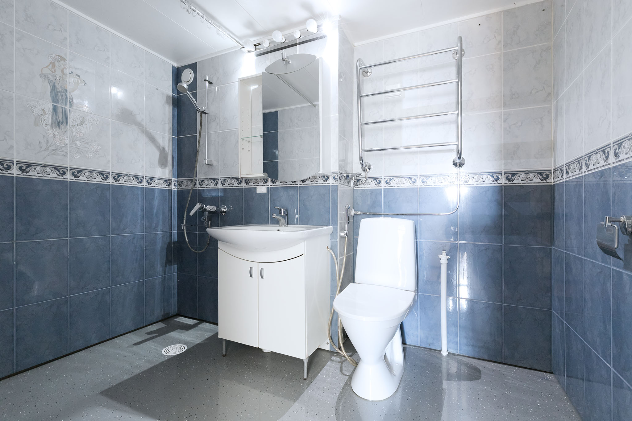 | Kylpyhuoneen kuvaus | WC-istuin, suihku, peilikaappi, bidee-suihku, pesuallas ja pesukoneliitäntä, seinät (kaakeli), lattiat (epoksipinnoite) |