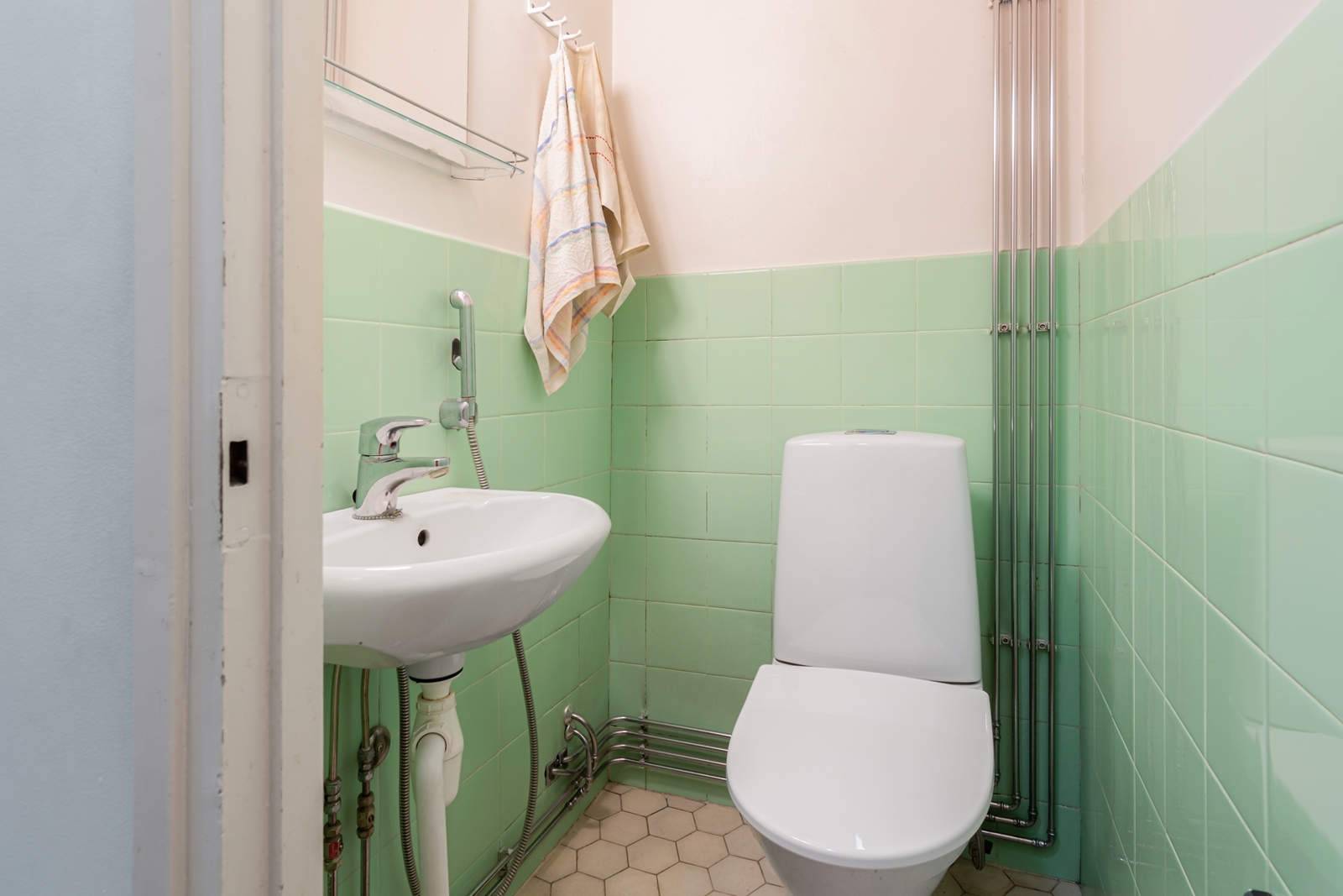 | Kylpyhuoneen kuvaus | Peili, suihku, pesukoneliitäntä ja asennettuja erikoisvarusteita, (pyyhekuivain sähköinen), seinät (maali ja kaakeli), lattiat (laatta) |