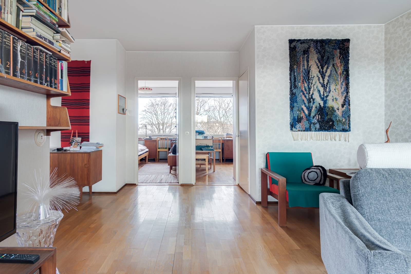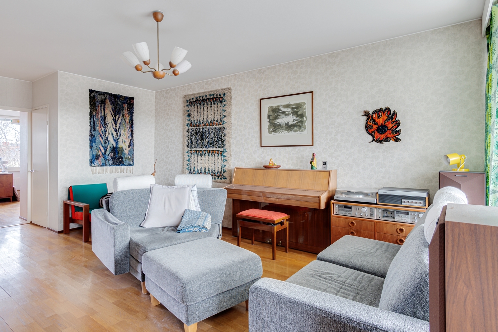| Olohuoneen kuvaus | Seinät (tapetti), lattiat (parketti) |