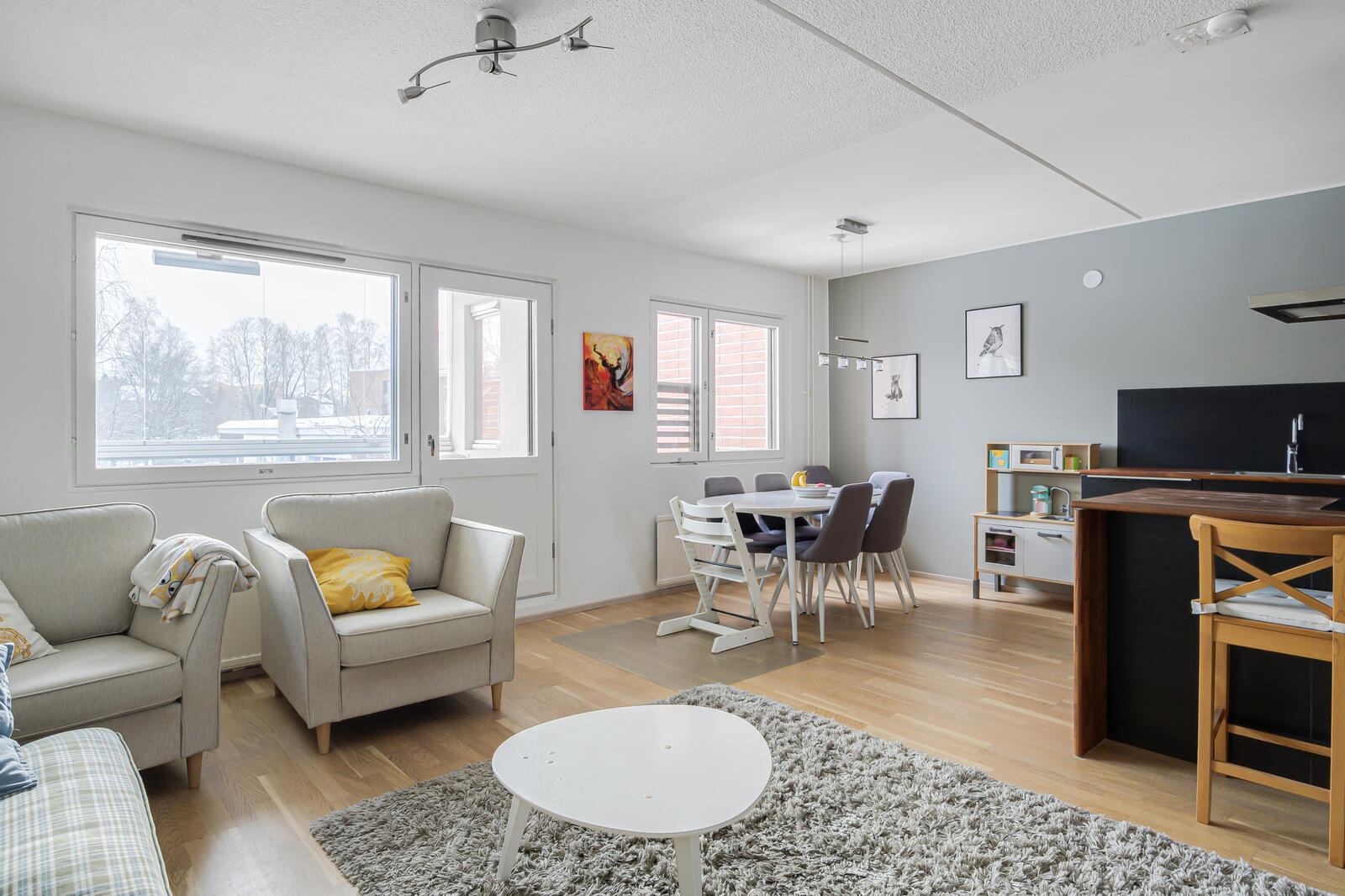 Tämä koti on täydellinen valinta sinulle, joka arvostat hyviä yhteyksiä ja palveluja. Moderni keittiö saarekkeineen ja olohuone ovat yhtenäistä tilaa, tarjoten erinomaiset puitteet ruoanlaittoon ja yhdessäoloon. Läpitalon huoneisto, lasitettu parveke etelään. Avara ja käytännöllinen kokonaisuus, joka sopii erinomaisesti niin pariskunnalle kuin lapsiperheellekin. Turvallinen matka alakouluun ilman kadun ylitystä, lukuisat päiväkodit, yläaste ja lukio sekä Kirkkojärvenpuiston lasten leikkikenttä.