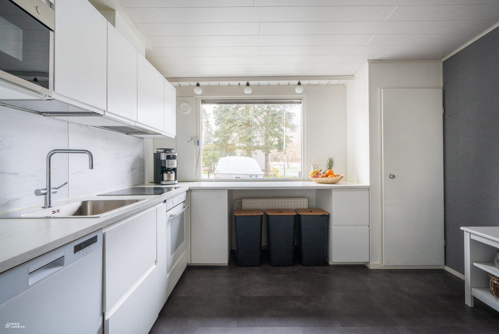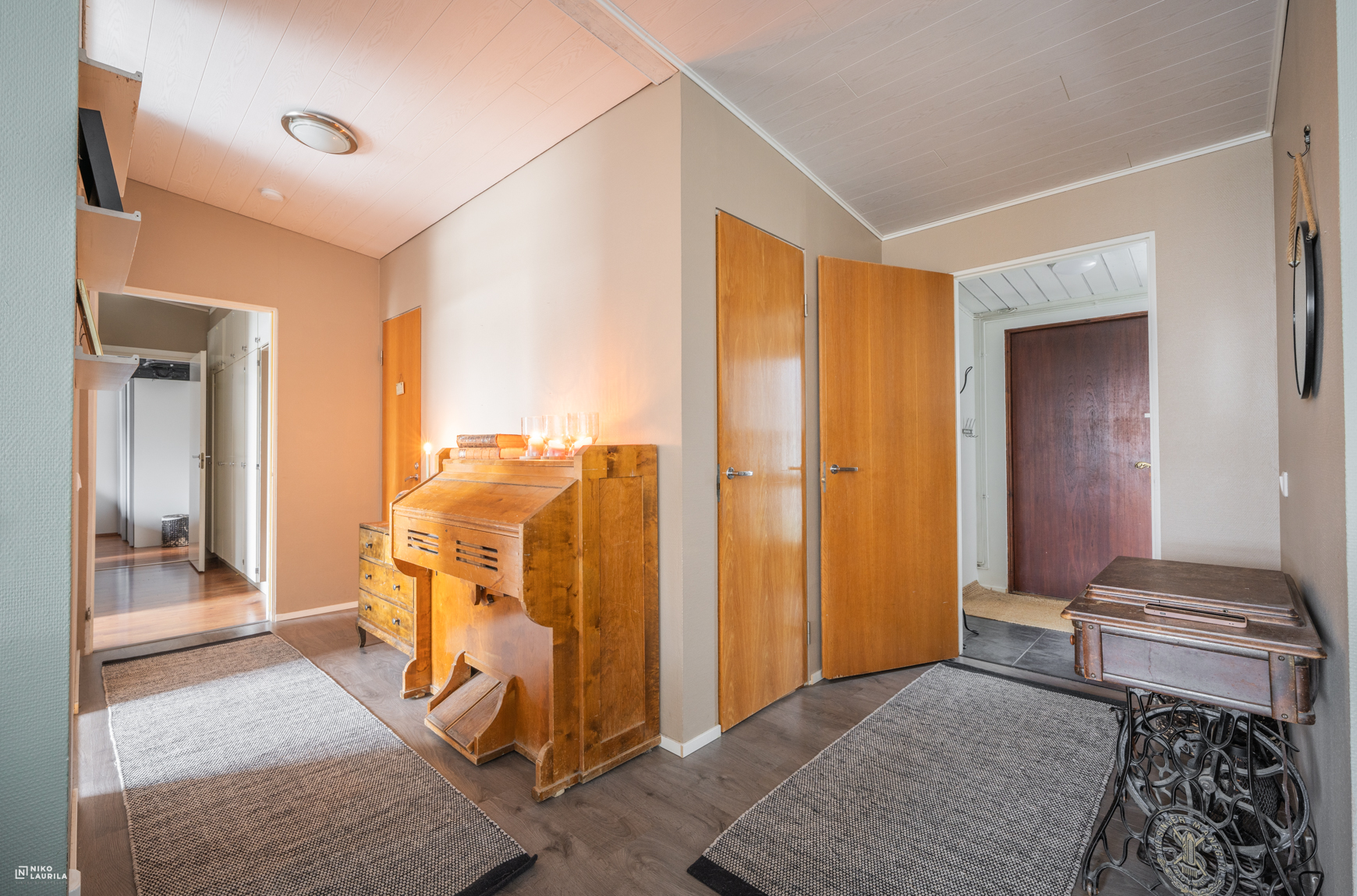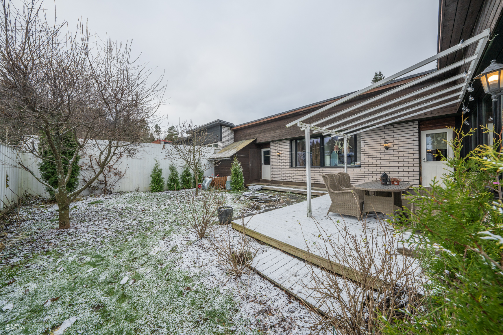 Rauhallisella Pihlajatien alueella sijaitseva tämä vuonna 1975 valmistunut omakotitalo vuokratontilla. Kodin pohjaratkaisu tarjoaa runsaasti tilaa ja mahdollisuuksia erilaisiin elämäntilainteisiin. Asuintilat ovat kaikki yhdessä tasossa, ja makuuhuoneita löytyy tarpeen mukaan jopa viisi. Takkahuone toimii mainioina lisähuoneena tai tunnelmallisena pukuhuoneena.