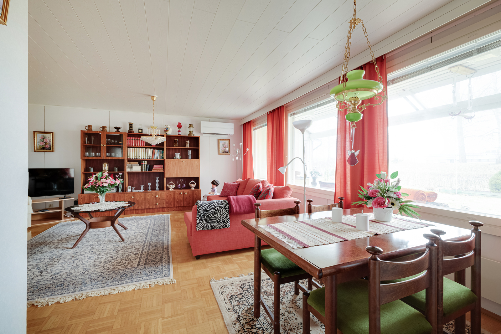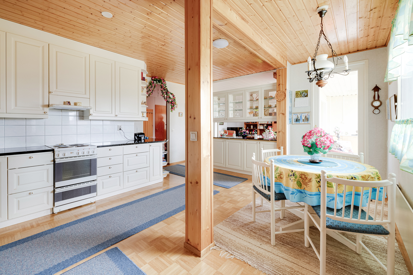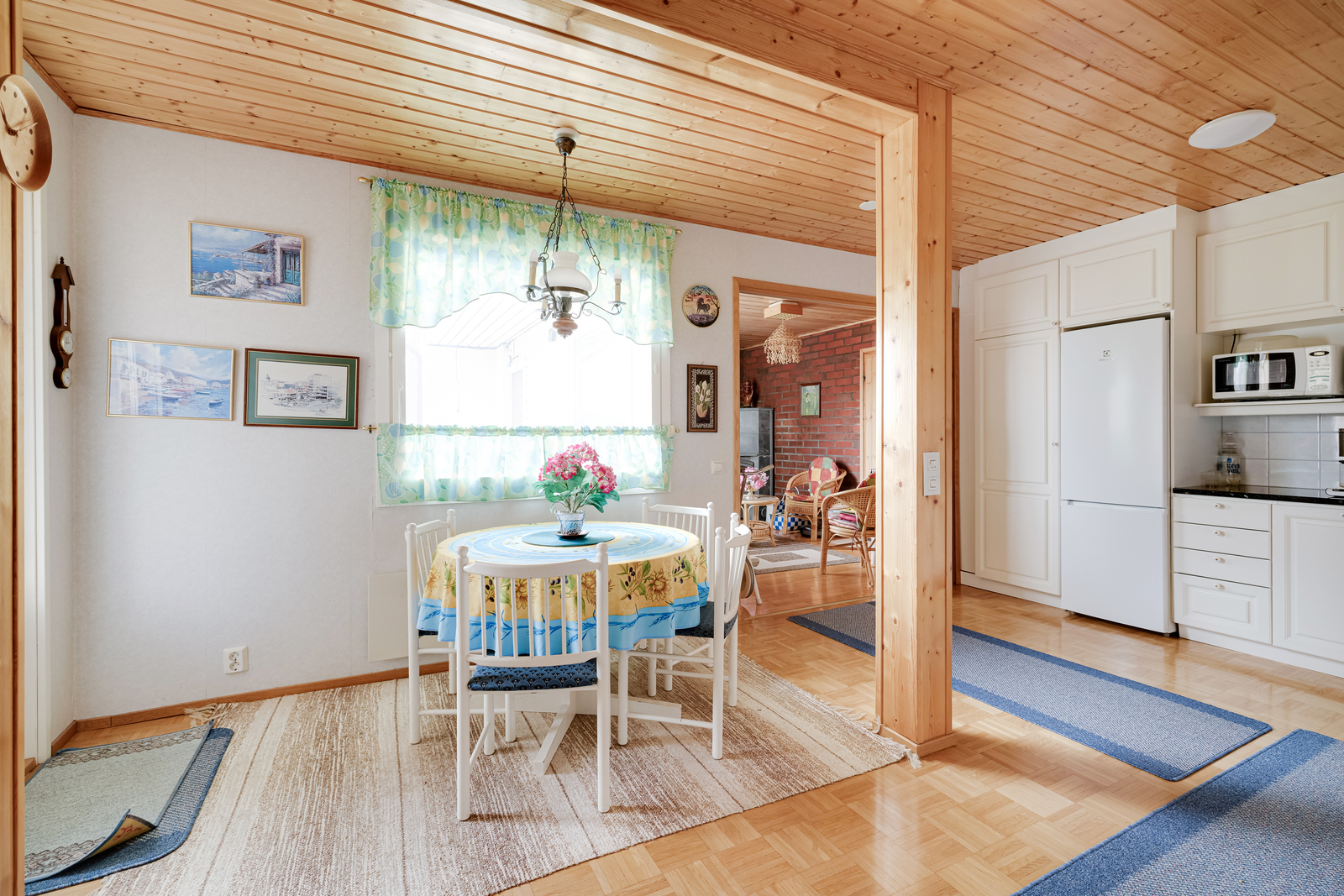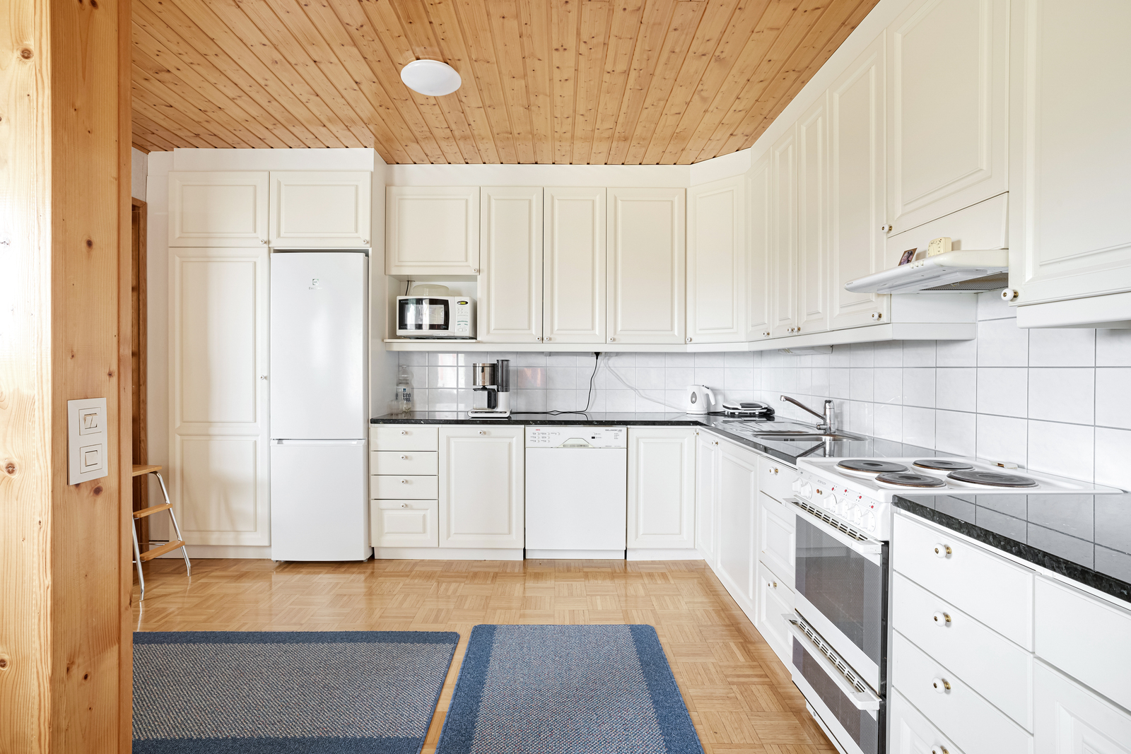 Kodin sydän, jossa on runsaasti tilaa ruoanlaittoon ja yhdessäoloon. Keittiöstä on suora pääsy lasitetulle terassille ja takapihalle, mikä mahdollistaa vaivattoman siirtymisen sisä- ja ulkotilojen välillä. Terassilla voit nauttia ulkoilmasta säästä riippumatta. Täydellinen paikka rentoutumiseen ja vapaa-ajan viettoon.