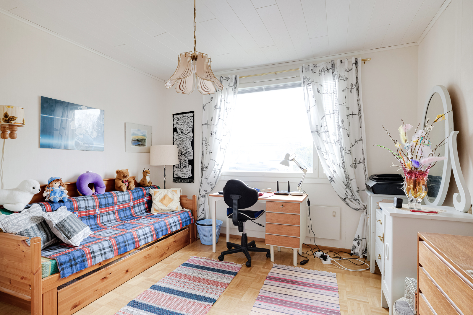 Kaksi tilavaa makuuhuonetta ja kaksi isoa vaatehuonetta, runsaasti säilytystilaa vaatteille ja muille tavaroille.