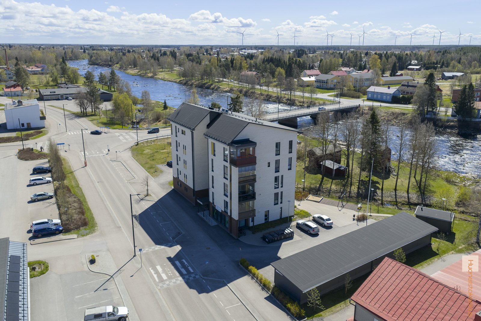 Kalajoen Sillanrannassa myynnissä kolmannen kerroksen kaksio hienolla jokinäkymällä.