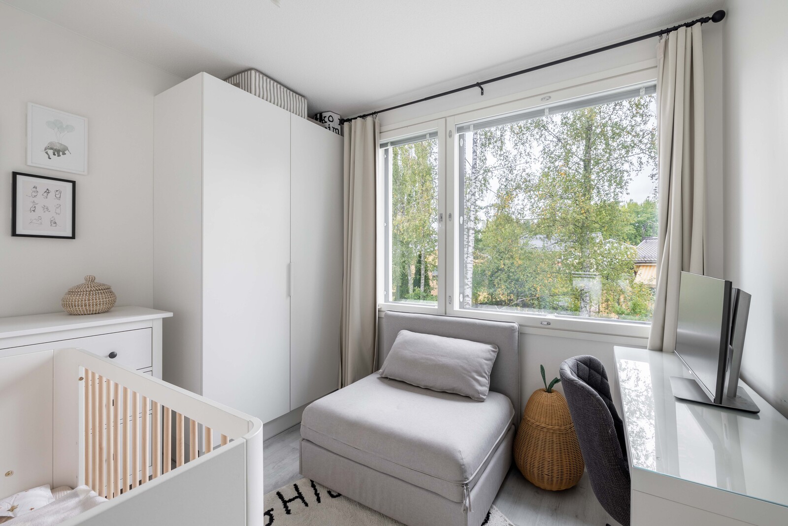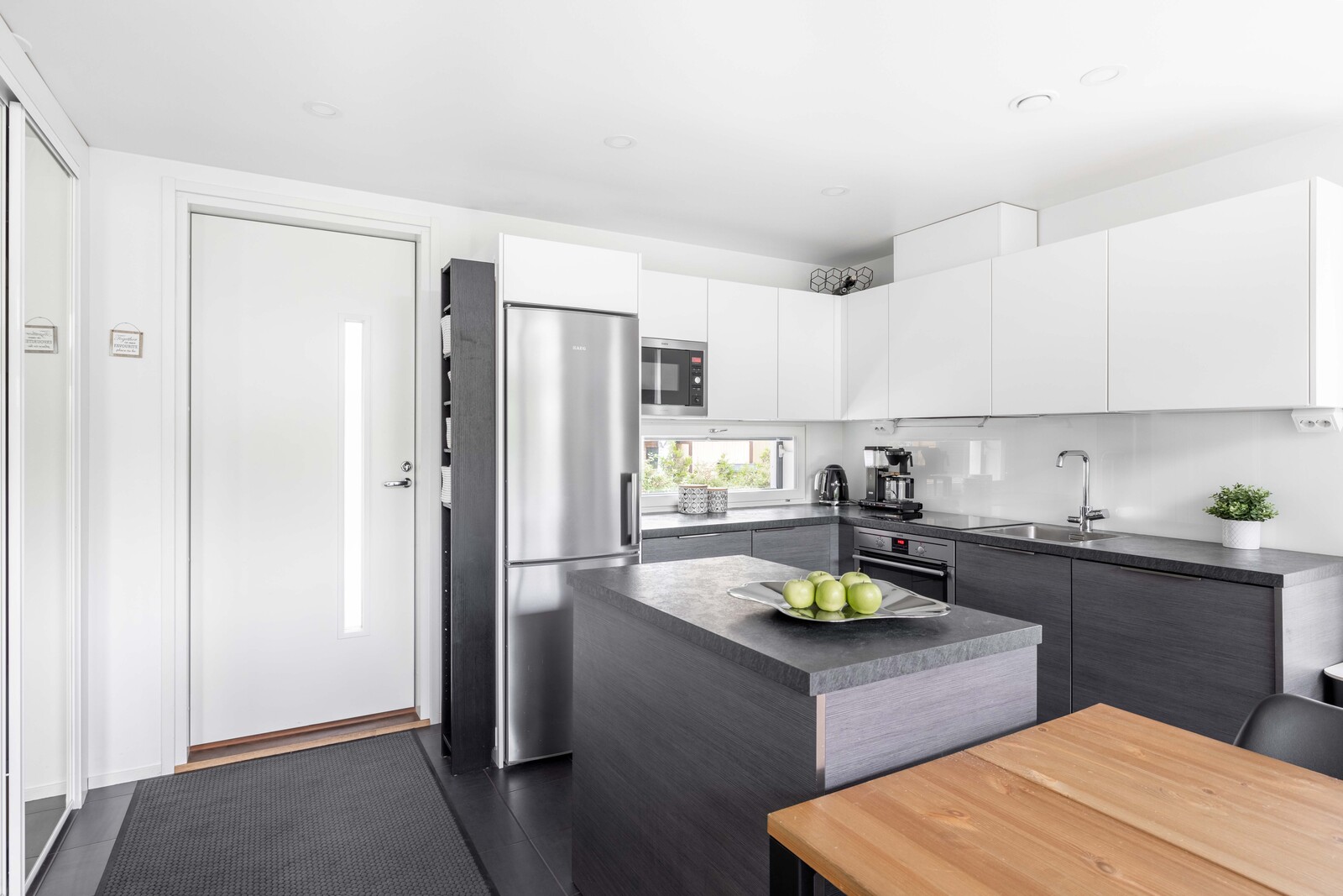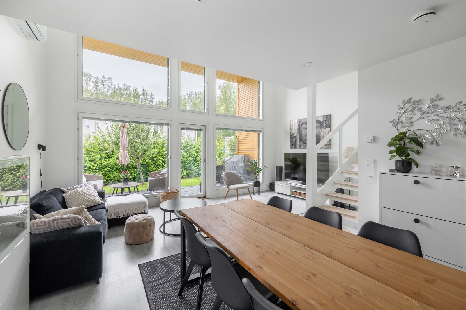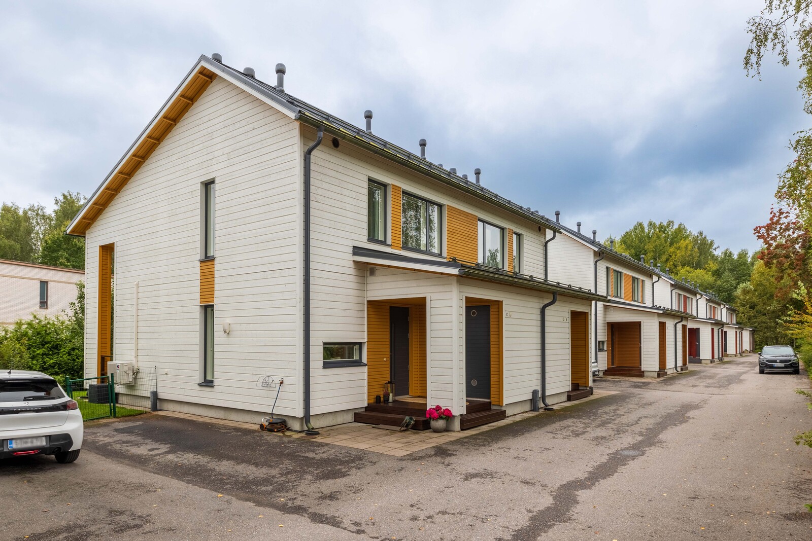 Kodissa yhdistyvät harmoninen värimaailma, toimiva pohjaratkaisu ja laadukkaat materiaalit. Sisään tullessa suoraan edessäsi avautuu korkean olohuoneen tuoma valoisuus ja ilmavuus sekä vehreä näkymä. Puustellin keittiössä on tilaa kokkailla ja seurustella. Alakerrassa on kylpyhuone ja sauna. Saunan jälkeen voit vilvoitella katetulla terassilla. Yläkerrassa on kaksi makuuhuonetta ja erillinen wc. Olohuoneesta on käynti terassille ja omalle suojaisalle pihalle. Tähän kotiin muutat ilman remonttihuolia!