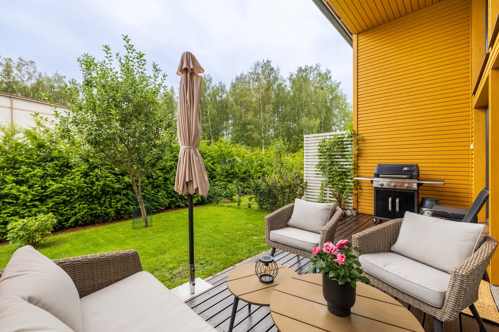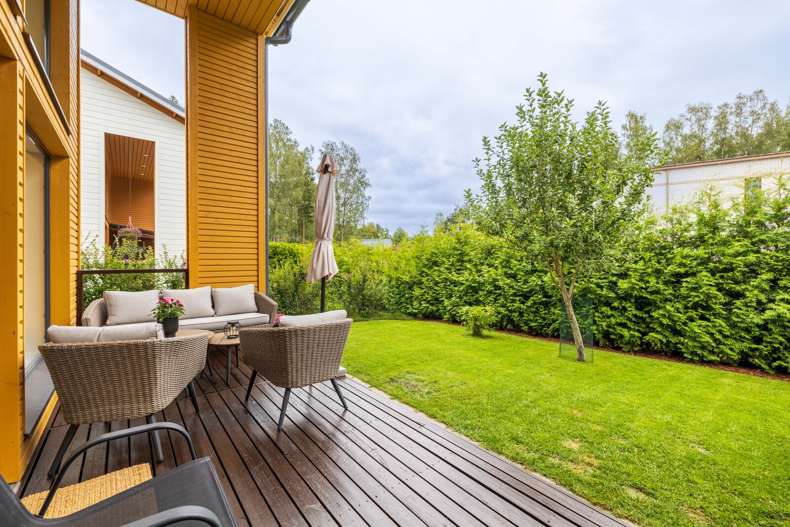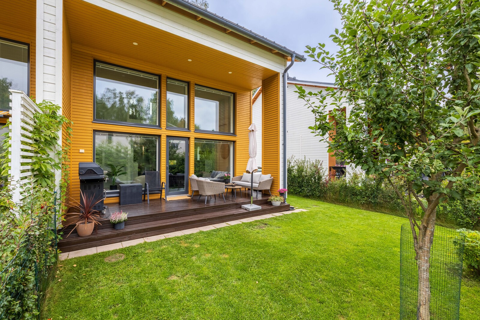 | Muuta kauppaan kuuluvaa | Sälekaihtimet, portaissa askelmatot, piha-aita ja portti. Lisätietoja sisältyvistä varusteista: ilmalämpöpumppu. |