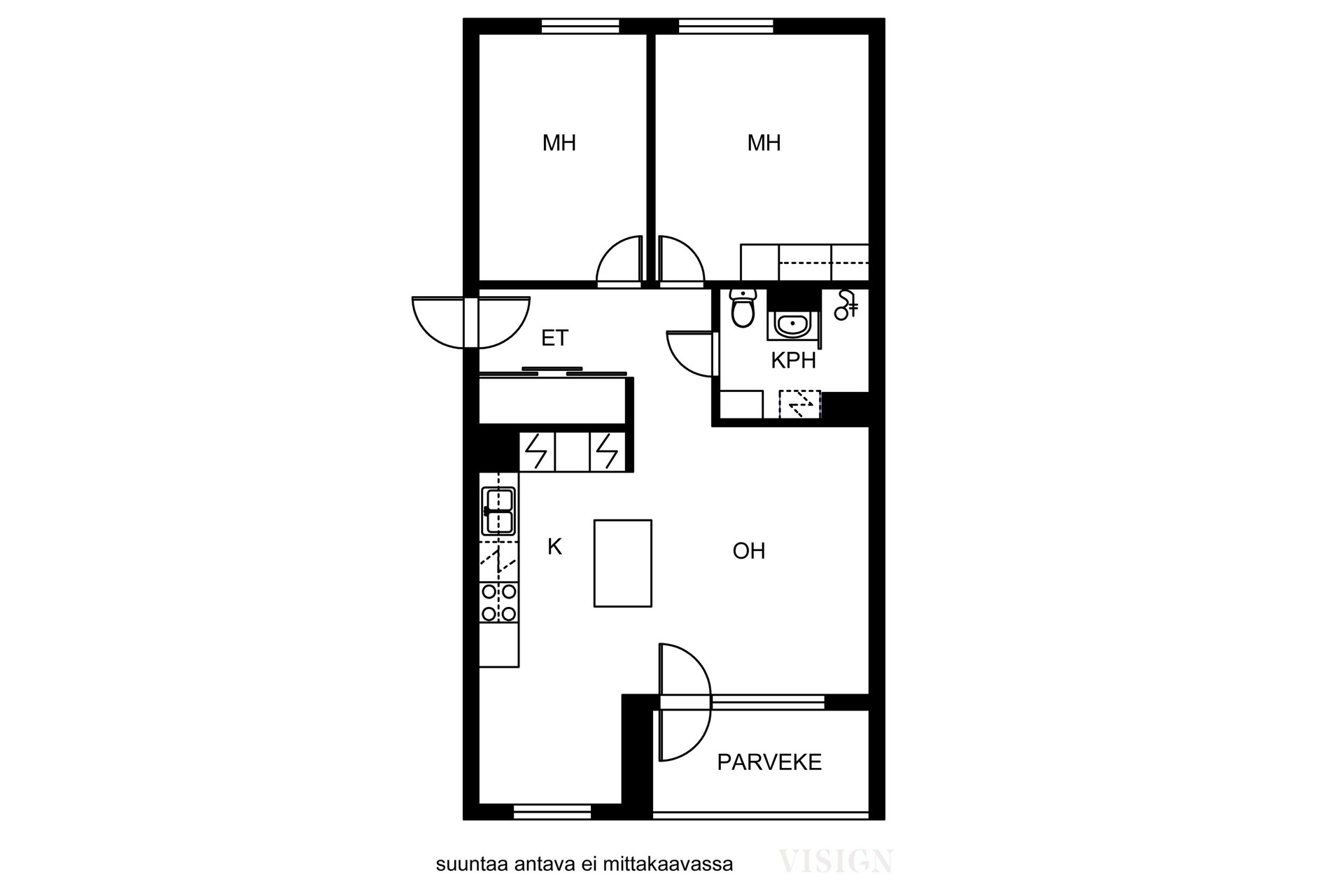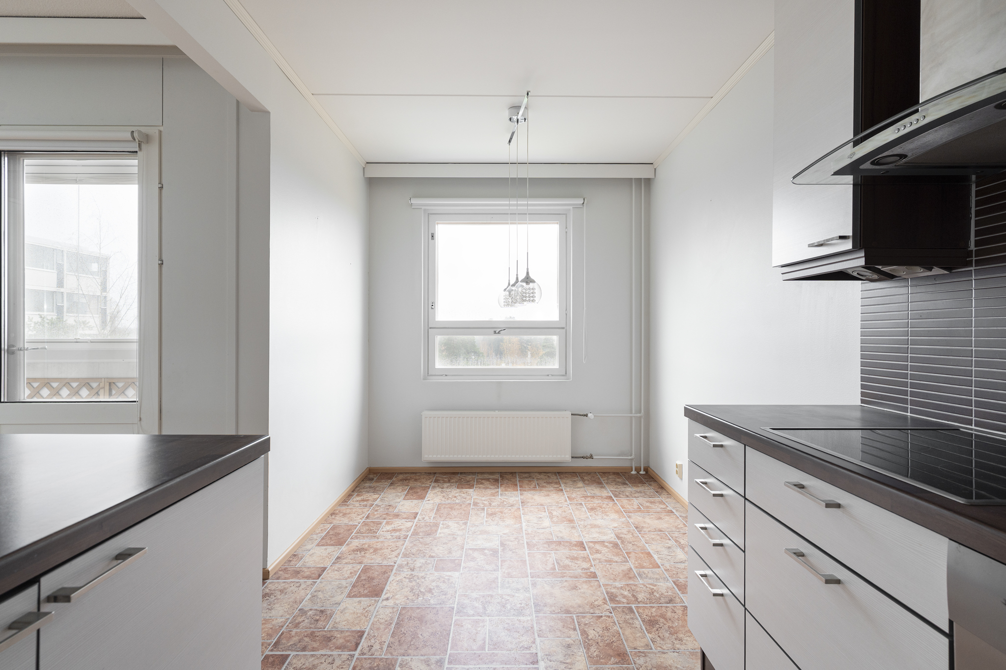 Tämän asunnon (4.krs) parvekkelta ja keittiöstä on esteetön ja rauhallinen näkymä.