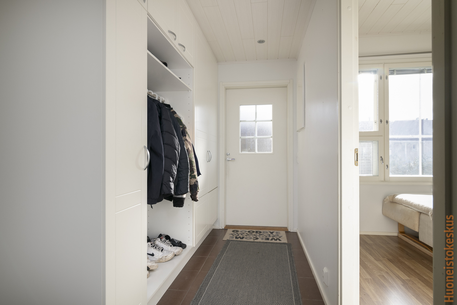 Asunnolle kuuluu autokatospaikka ja huoneistokohtainen varasto.