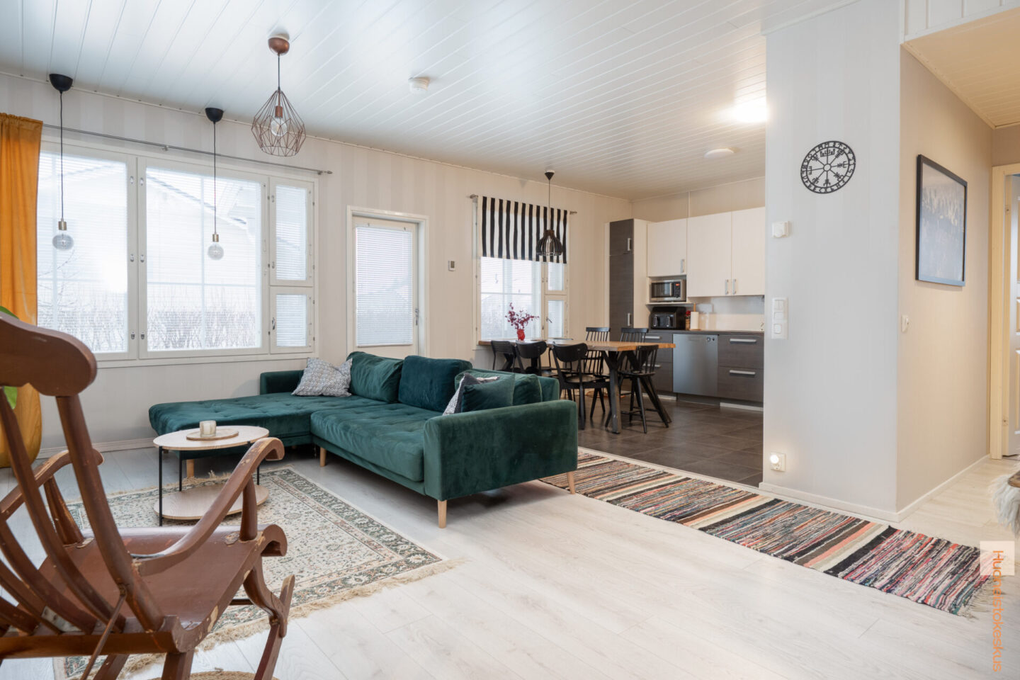 | Olohuoneen kuvaus | Seinät (maali ja tapetti), lattiat (laminaatti) |