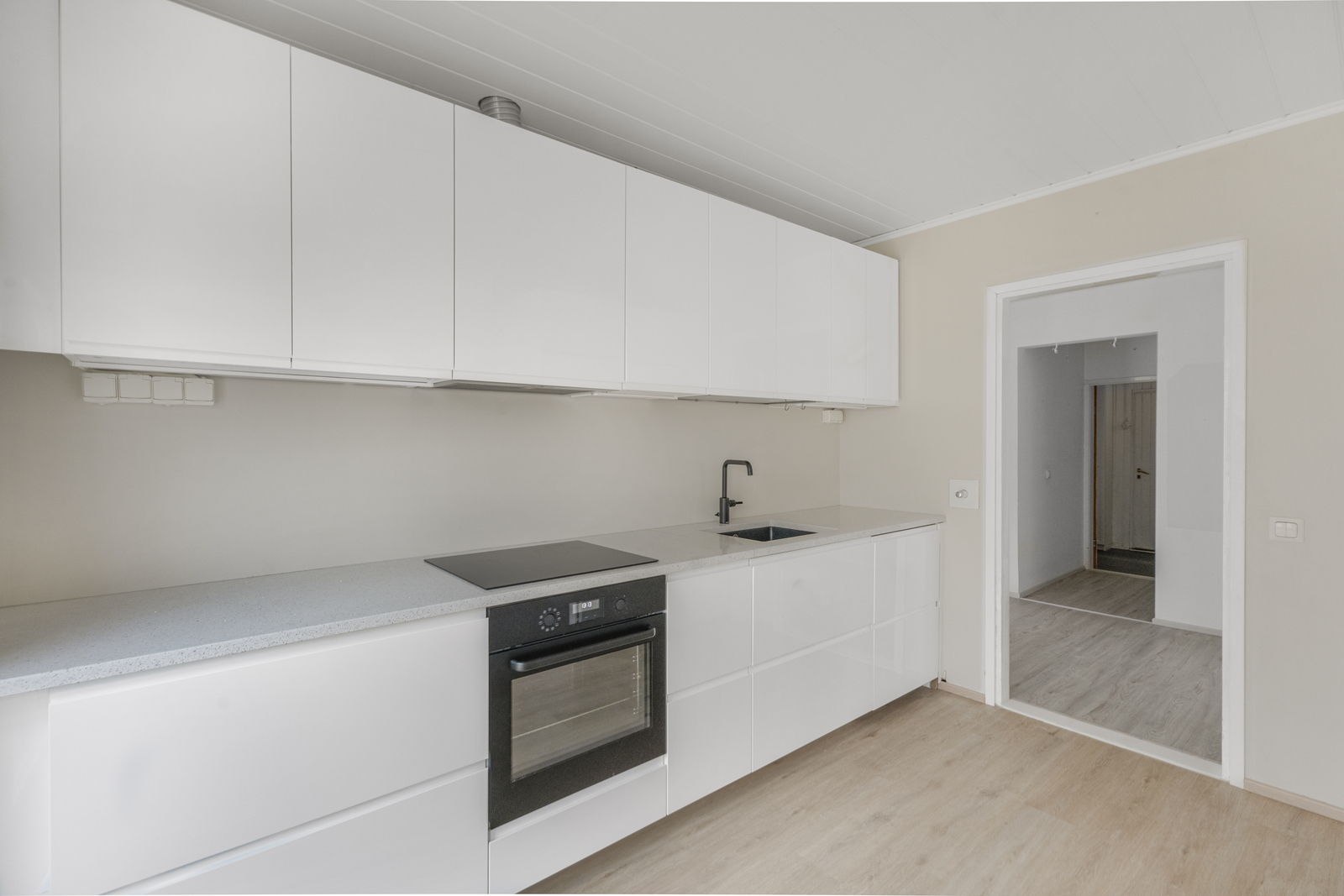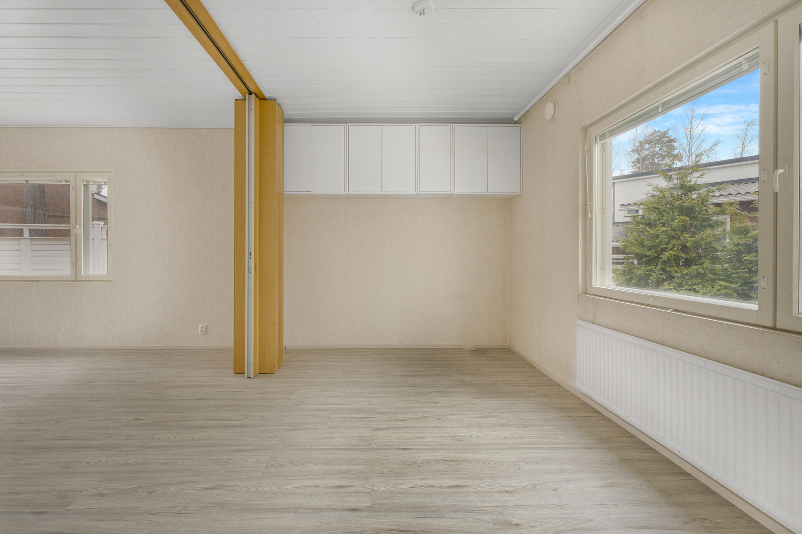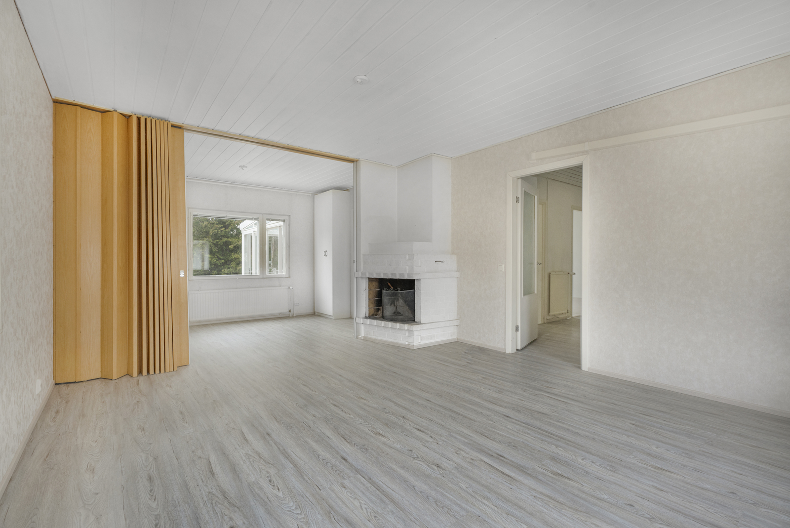 | Olohuoneen kuvaus | Seinät (tapetti), lattiat (laminaatti) |
