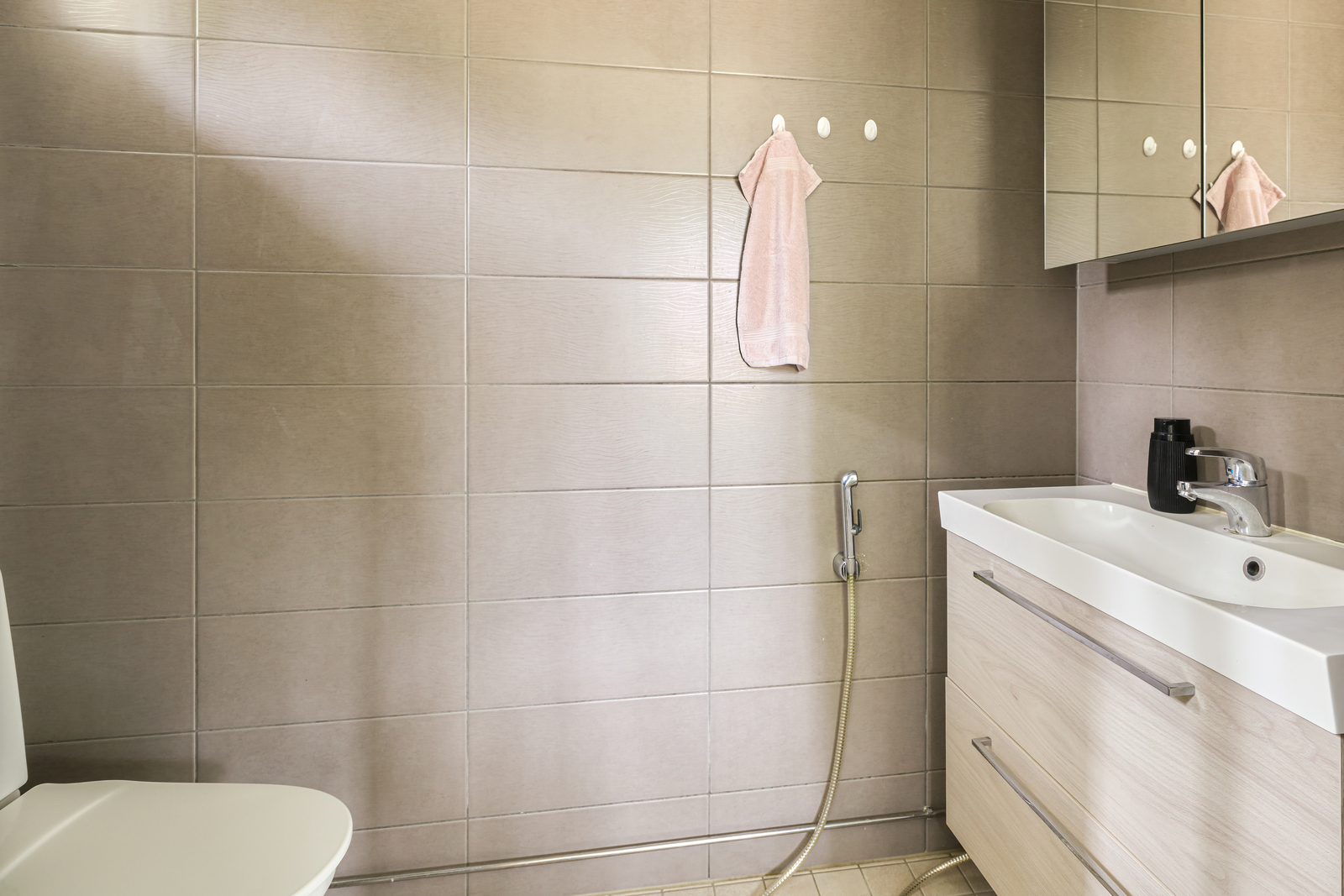Lukumäärä: 2, Bidee-suihku, peilikaappi ja lattialämmitys, seinät (Kaakeli), lattiat (Laatta) |
