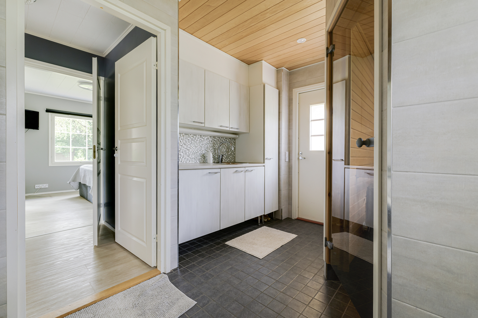 Seinät (puu), lattiat (laatta), Sähkökiuas |
