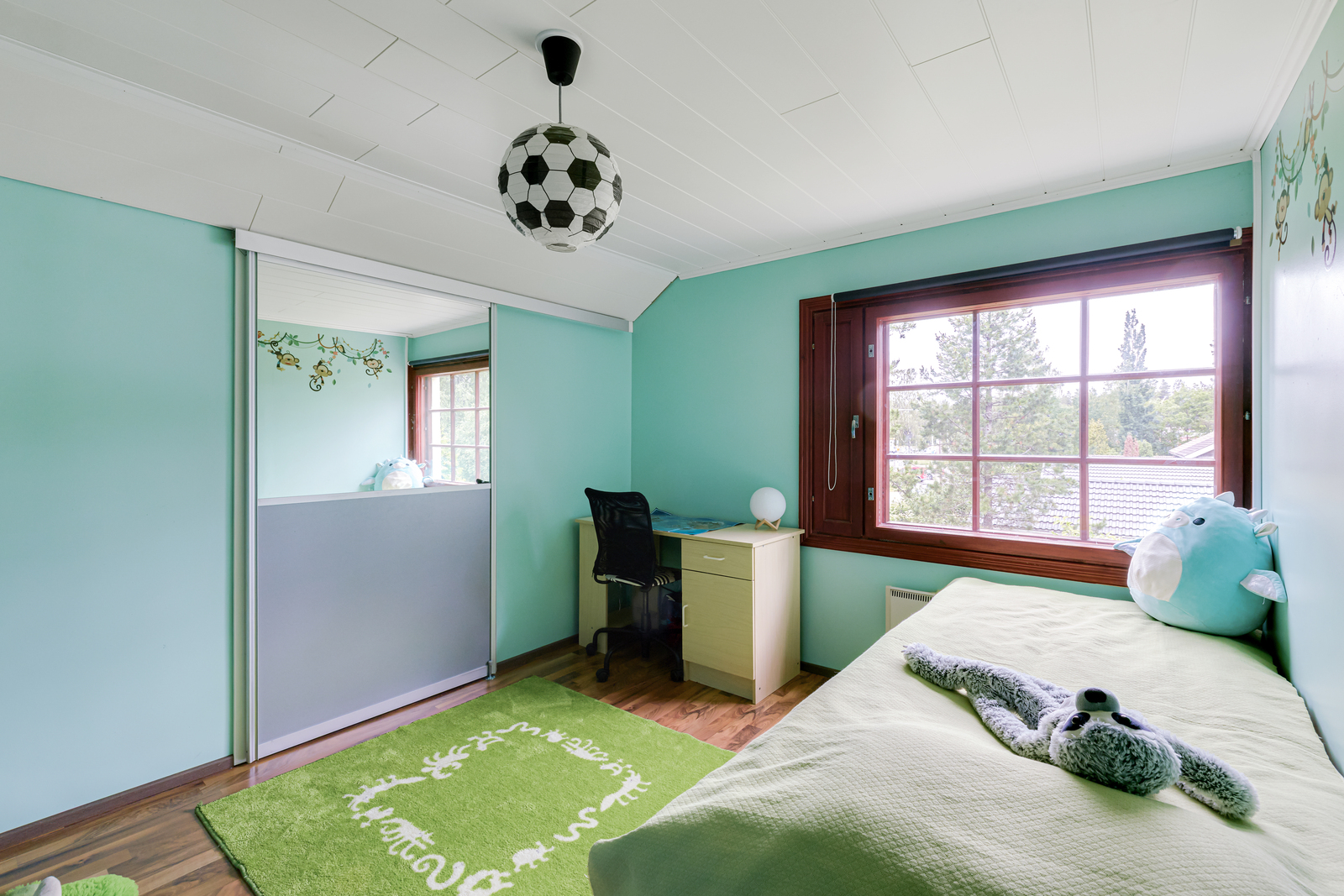 Sijainti on rauhallinen mutta palveluiden äärellä. Päiväkoti, koulut, leikkipuistot ja kauppa ovat vain kävelymatkan päässä ; arki helpottuu huomattavasti.