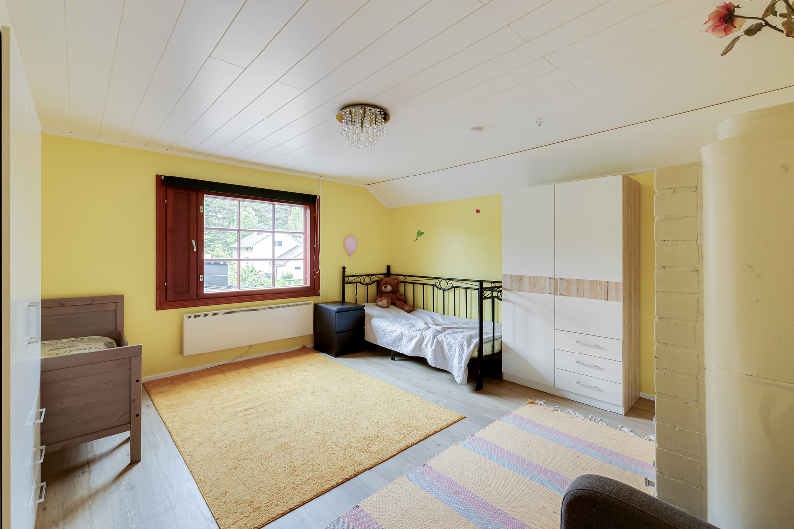 3 makuuhuonetta, jokaiselle perheenjäsenelle oma tila rauhoittua. Laajennusosa on nykyaikainen ja tyylikäs.
