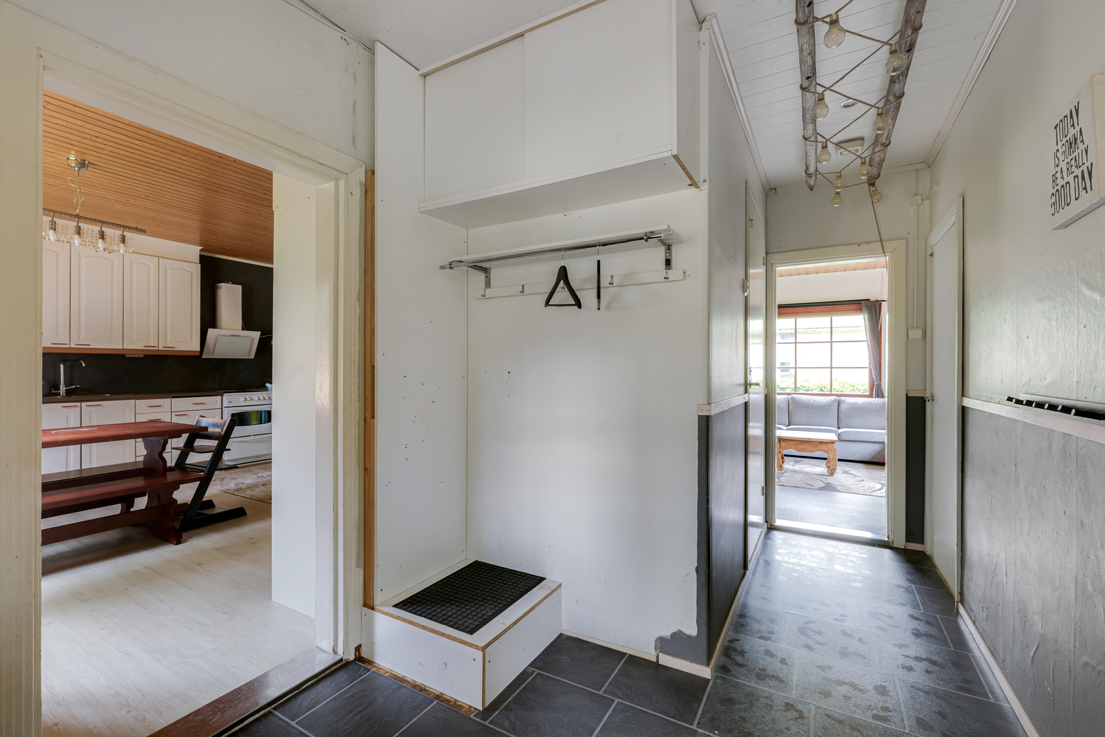 Tämä koti on paljon enemmän kuin seinät ja katto ; se on paikka, jossa syntyvät muistot. Puun ja luonnonmateriaalien lämmin henki yhdistyy harkittuihin ratkaisuihin, jotka tekevät tästä kodista sekä kauniin että toimivan.