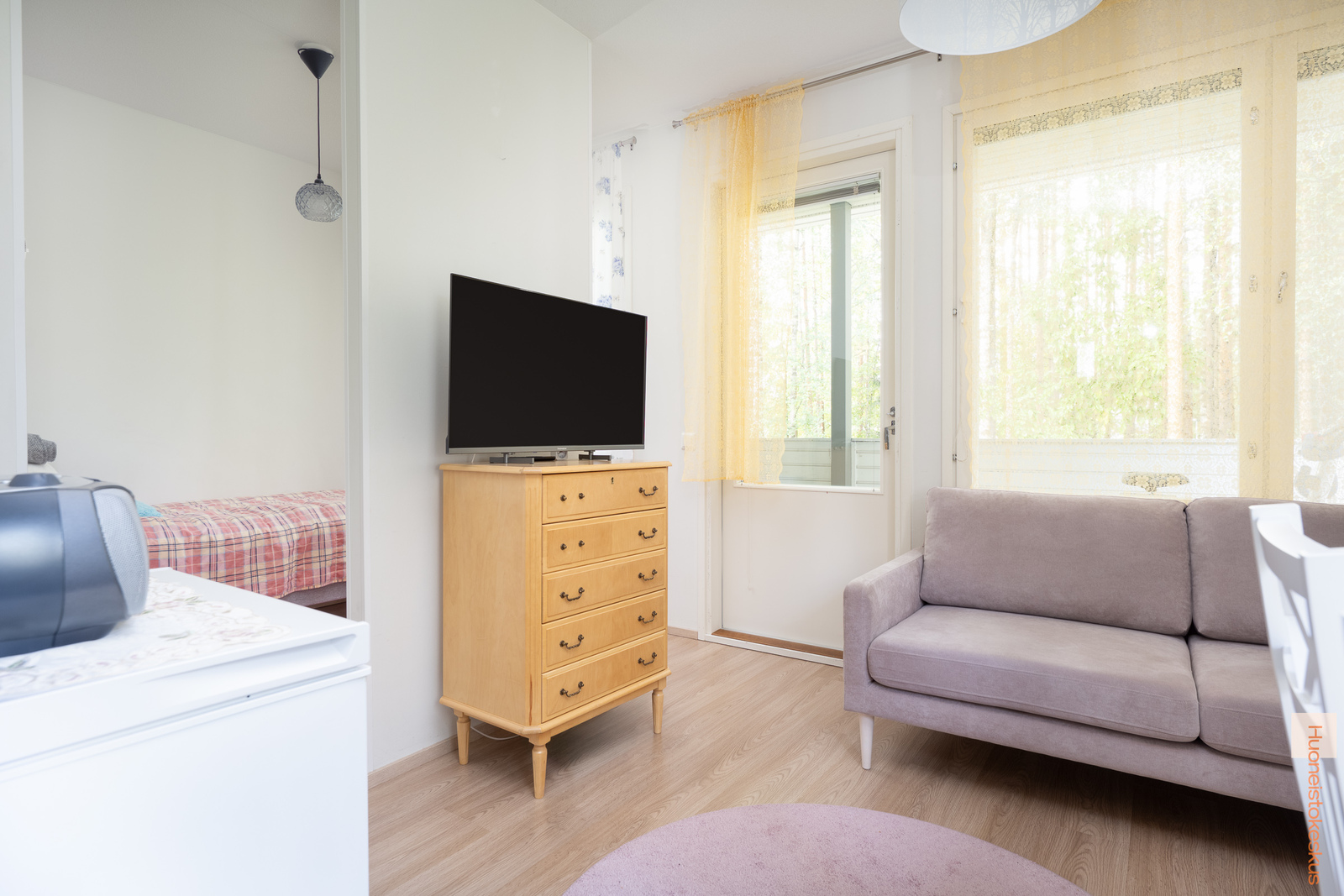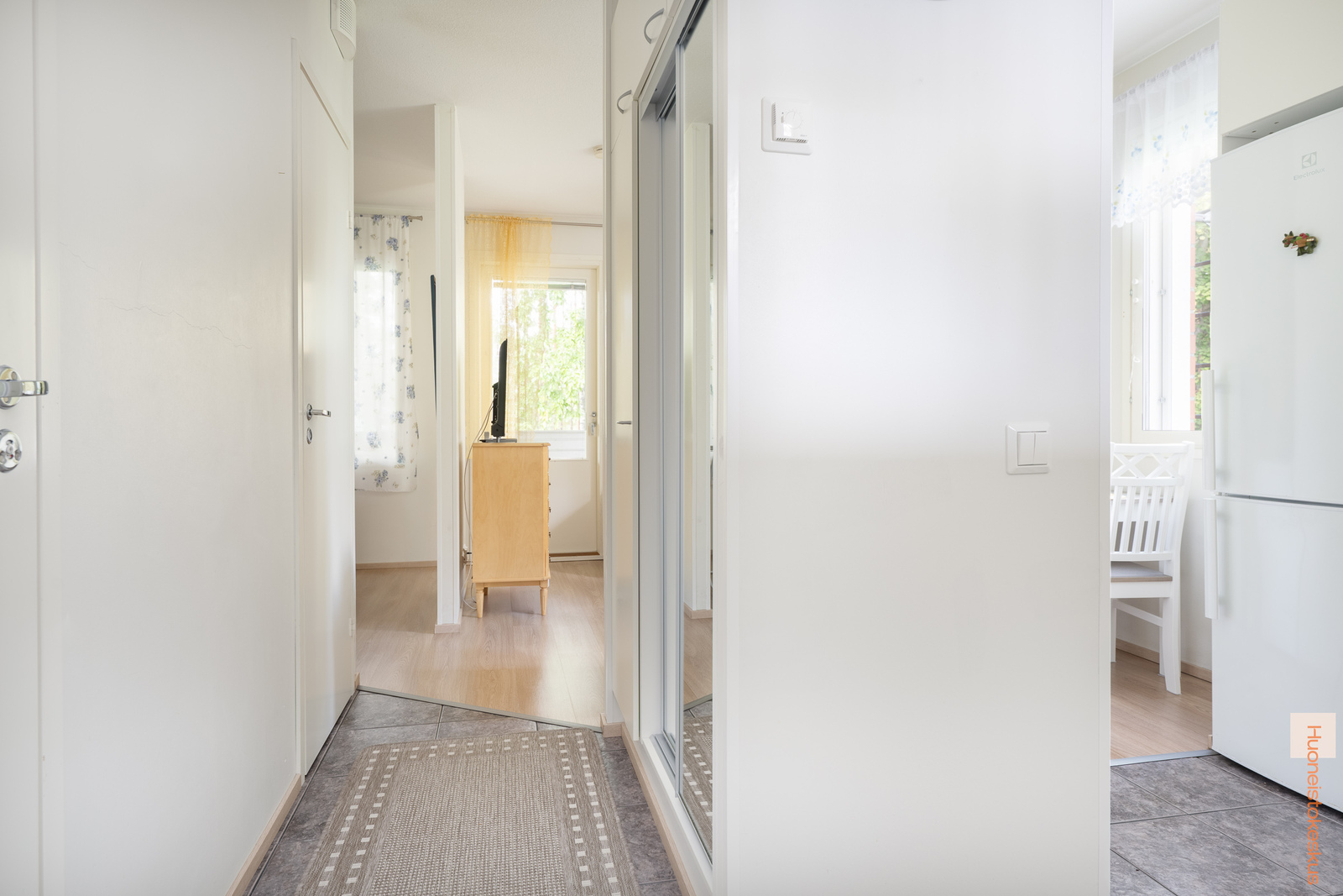 Tästä mukavan mallisesta asunnosta löytyy keittiö, olohuone, makuualkovi, kylpyhuone sekä vaatehuone. Säilytystilaa on lisäksi eteisen kaapistoissa. Puistonäkymällä oleva parveke tarjoaa lisätilaa kesäaikaan.