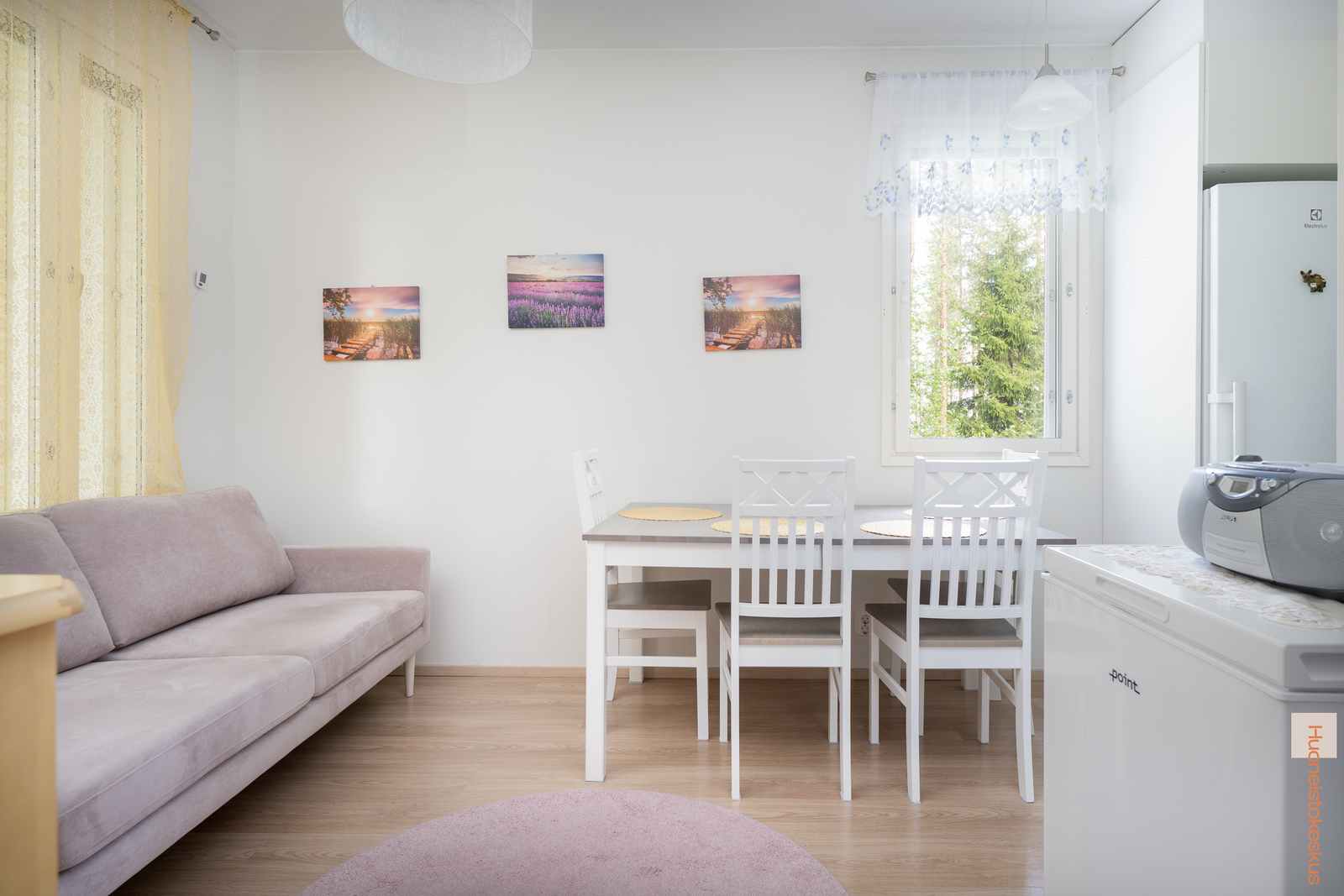 | Olohuoneen kuvaus | Seinät (maali), lattiat (laminaatti) |